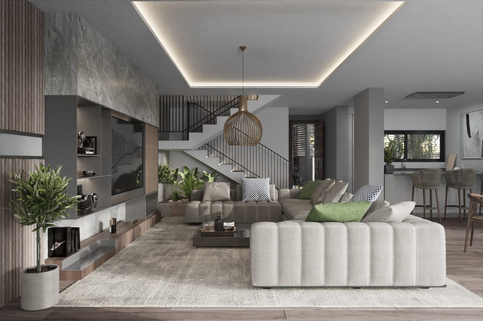 Każda willa posiada 3 lub 4 sypialnie, w zależności od potrzeb i upodobań rodziny, oraz duży salon na otwartym planie z nowoczesną kuchnią.