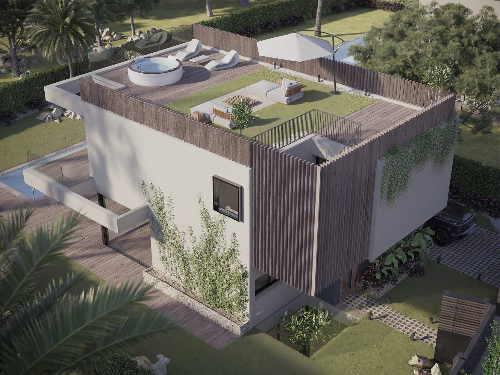 Ogromnym atutem jest zielony taras dachowy z miejscem na jacuzzi.