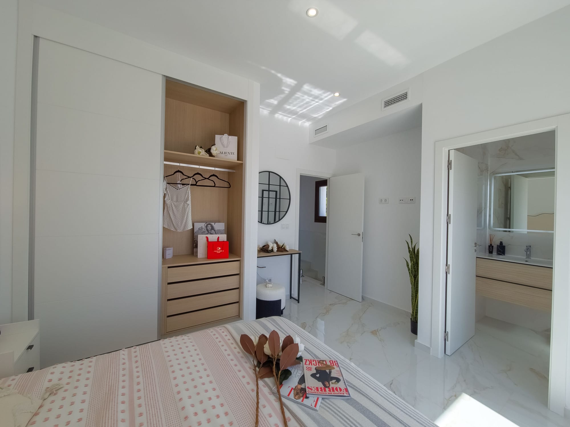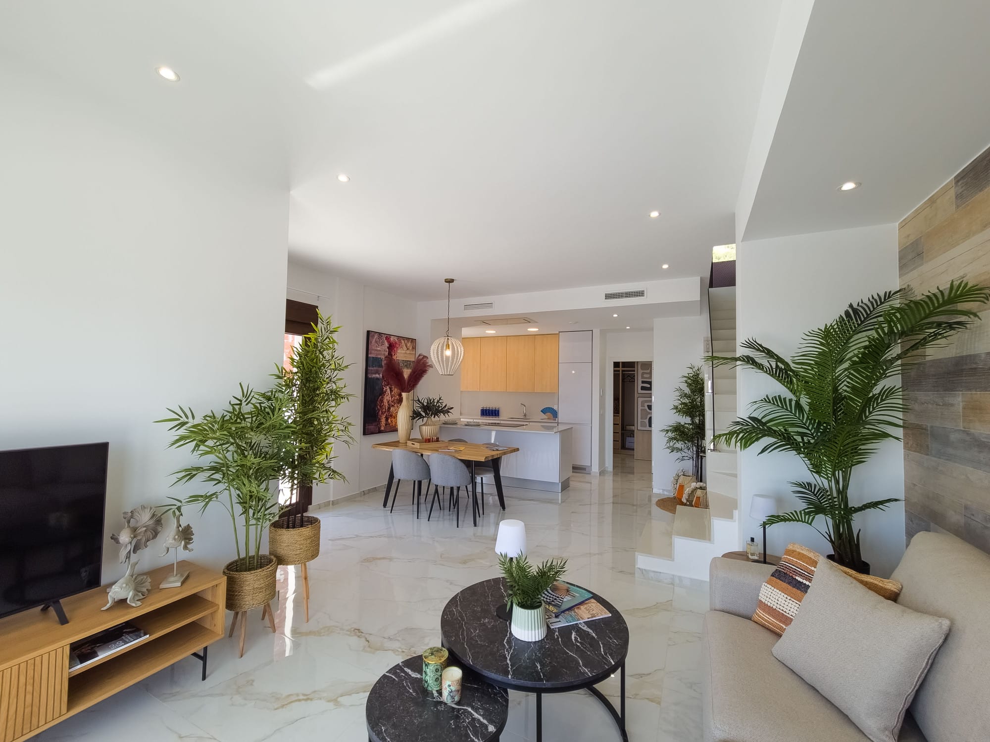 Te nowoczesne domy w Polop zostały zaprojektowane z myślą o wygodzie i energooszczędności — wyposażone są w pełni umeblowane kuchnie, eleganckie łazienki z ogrzewaniem podłogowym, system aerotermii do podgrzewania wody, preinstalację klimatyzacji oraz panele fotowoltaiczne. Dodatkowo zastosowano rolety elektryczne, a dla wymagających dostępna jest opcja solarium na dachu.