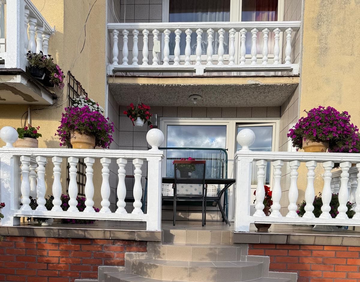 2 ustawne pokoje z bezpośrednim wyjściem na taras, jasna kuchnia sprzyjająca wspólnym posiłkom, komfortowa łazienka.