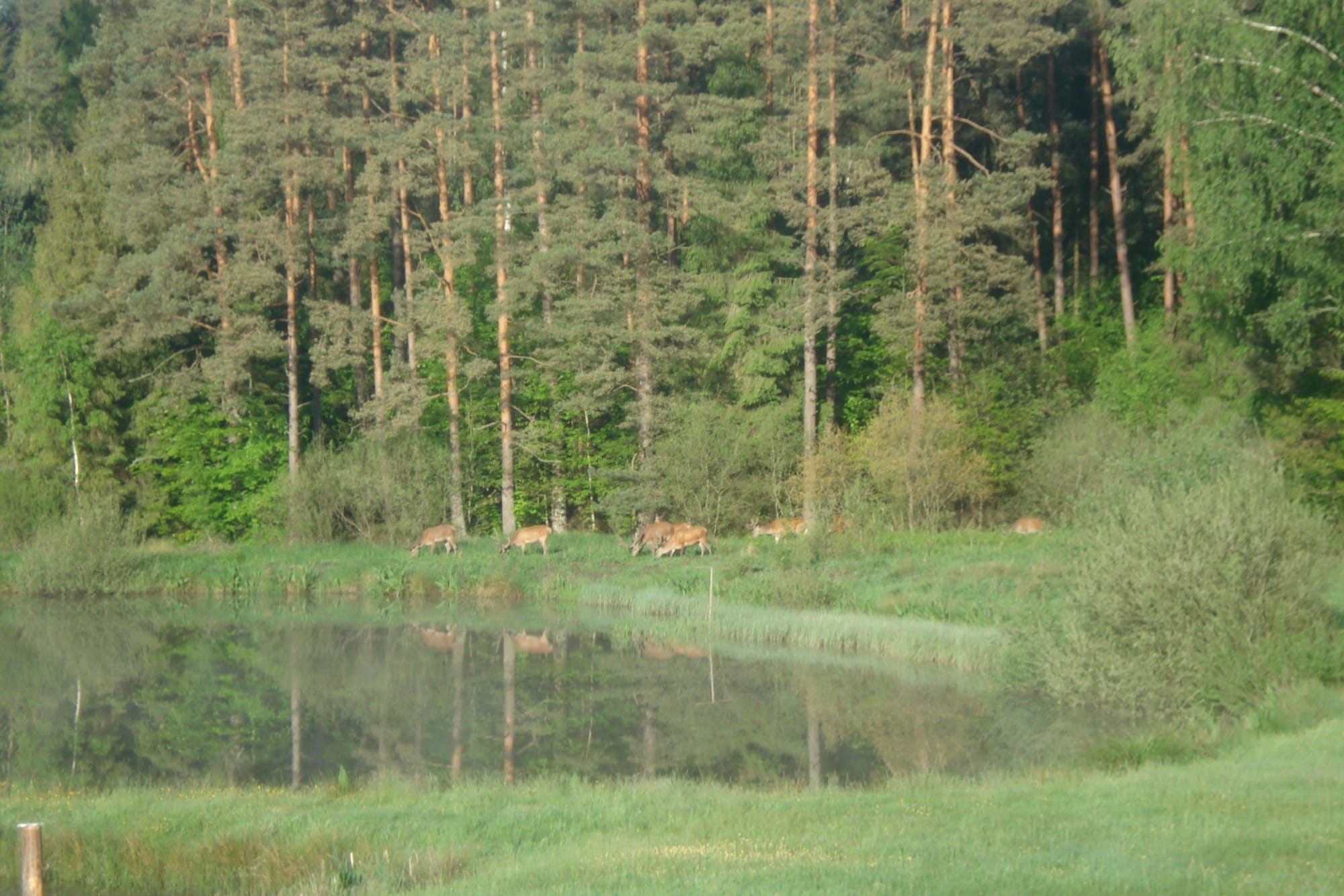 Dwa zarybione stawy z naturalnym brzegiem i pomostami (otoczone trzciną, zamieszkane przez żaby i ptactwo wodne).