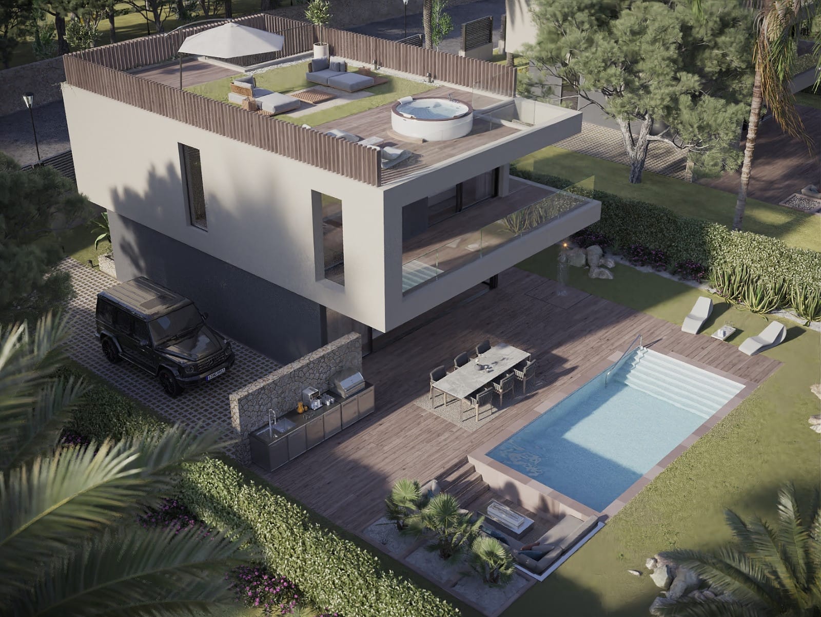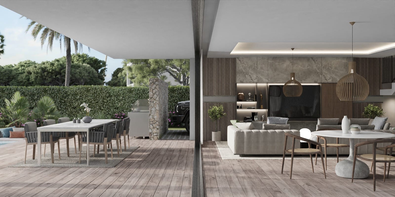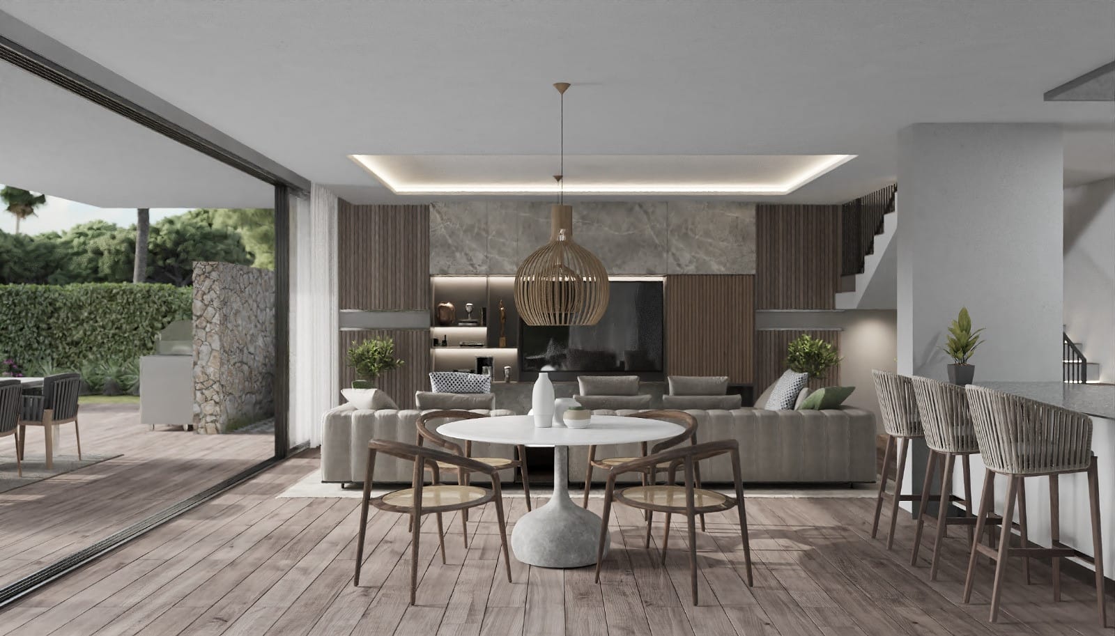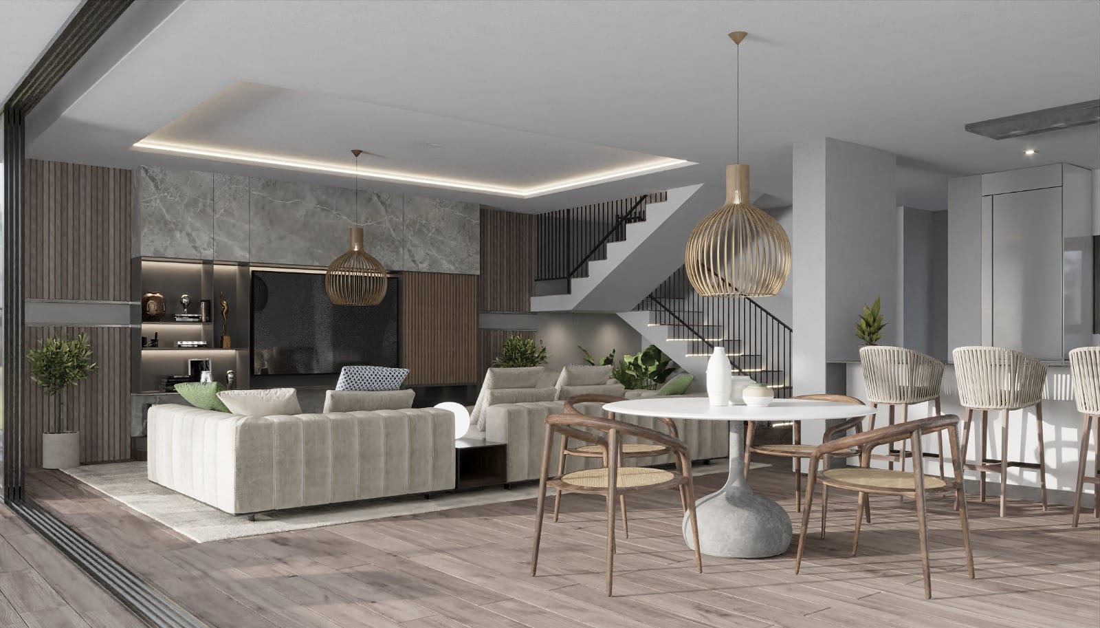 Każda willa posiada 3 lub 4 sypialnie, w zależności od potrzeb i upodobań rodziny, oraz duży salon na otwartym planie z nowoczesną kuchnią.