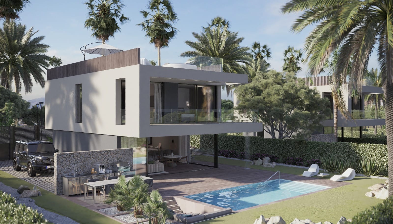 TakEkskluzywne wille z 3 i 4 sypialniami z otwartą i jasną przestrzenią oraz prywatnymi basenami w El Campanario w Esteponie.