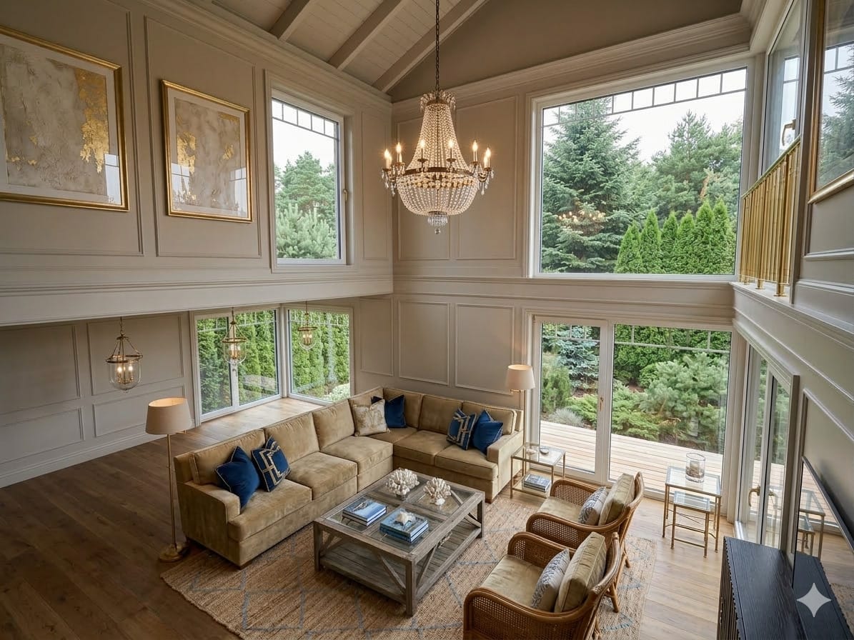 – Nowoczesna architektura z wysokimi sufitami i systemem okien aluminiowych, zapewniająca maksymalne doświetlenie.