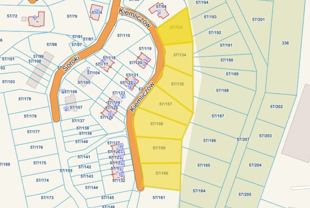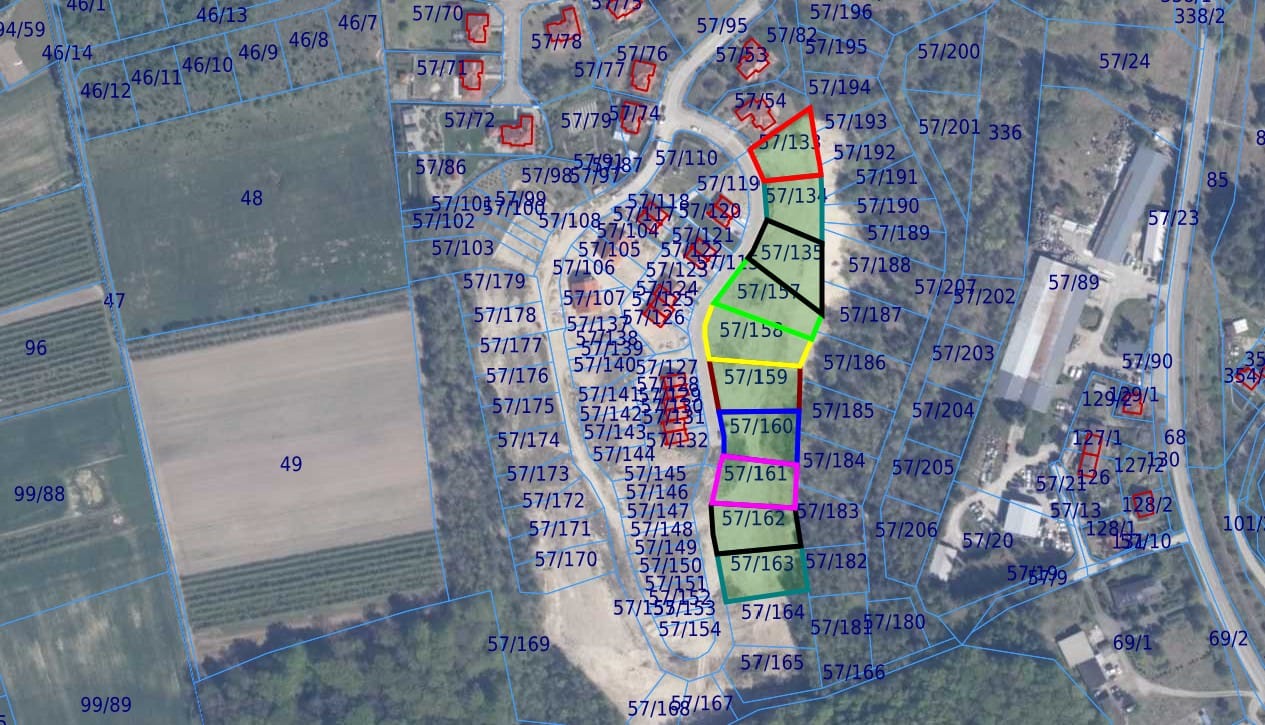 Działka o powierzchni: 1029 m² (numer: 57/160) jedna z 7 działek przygotowanych do sprzedaży.