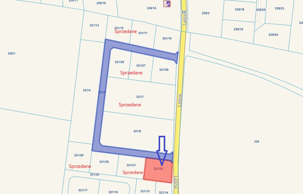 Dla działki nr 321/32 warunki zabudowy (w trakcie uzyskania) dla zabudowy mieszkaniowej jednorodzinnej. Możliwość przepisania decyzji na nowego właściciela.