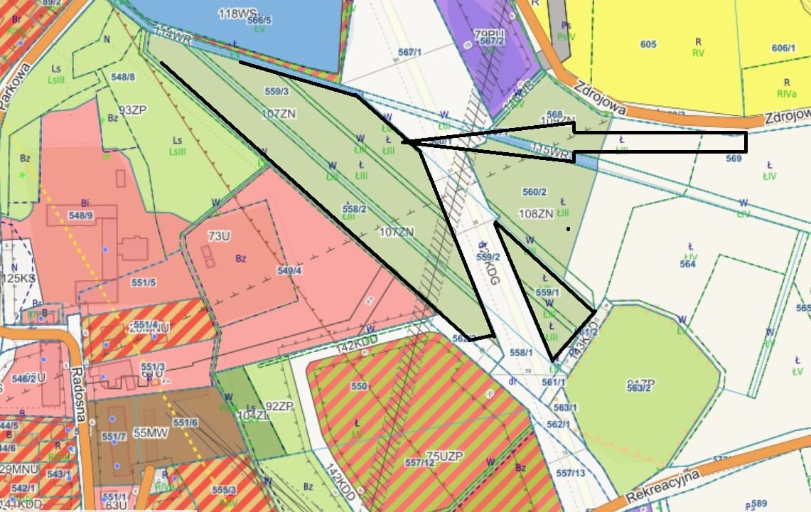 Przeznaczenie to zakłada tereny zielone niezagospodarowane, służące jako strefa przyrodnicza lub rekreacyjna bez intensywnej zabudowy.