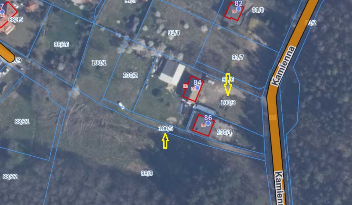 – Dodatkowo przedmiotem sprzedaży wraz z działką jest udział w prywatnej drodze nr 100/5 – 458 m2, która stanowi drugi wjazd na działkę. Udział w drodze 54/100. Droga ma oddzielną księgę wieczystą.