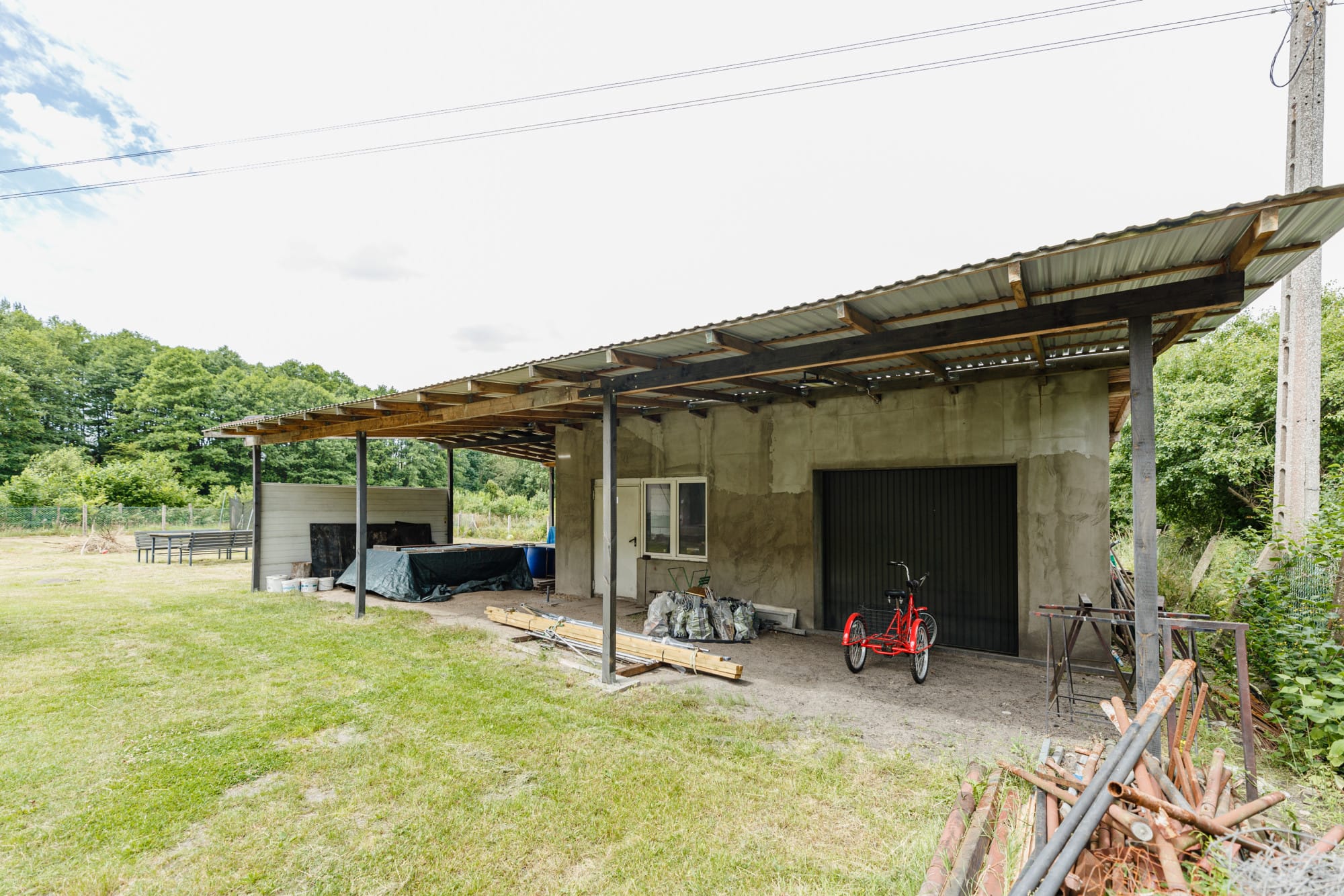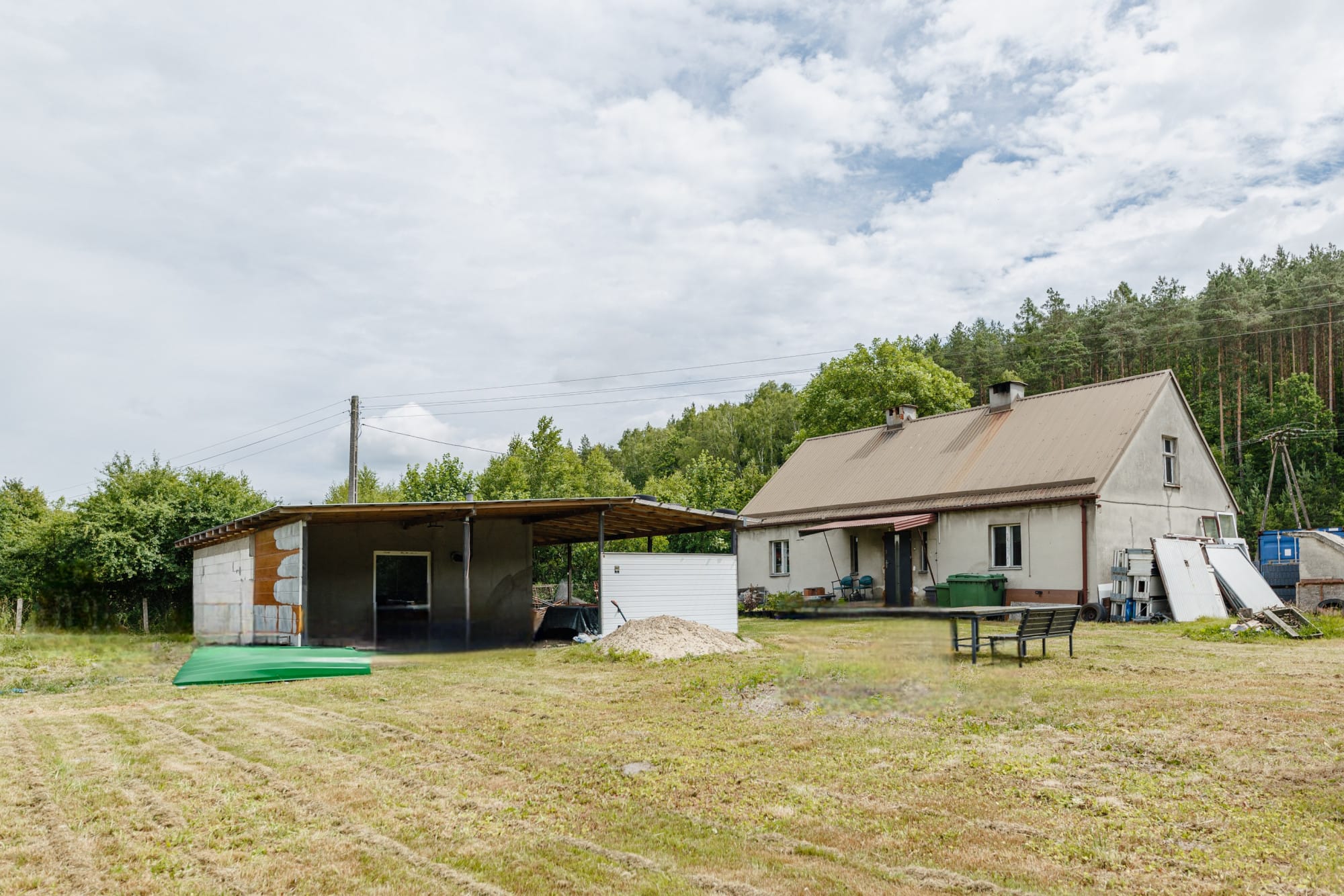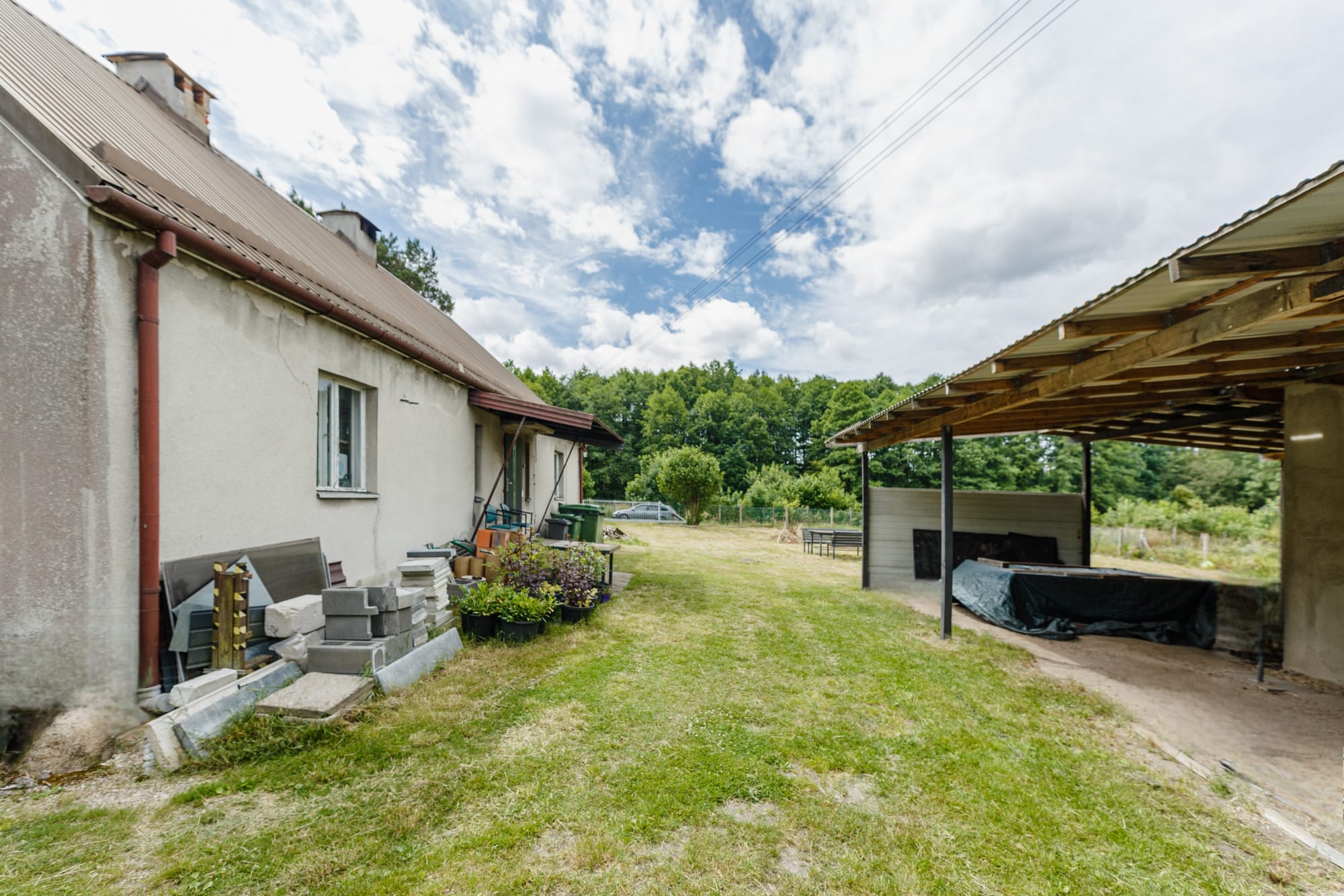 – Na działce znajduje się dom z poddaszem 120 m2 + 60 m2 oraz budynek gospodarczo-garażowy około 60 m2, wiata, piwnica ziemianka.