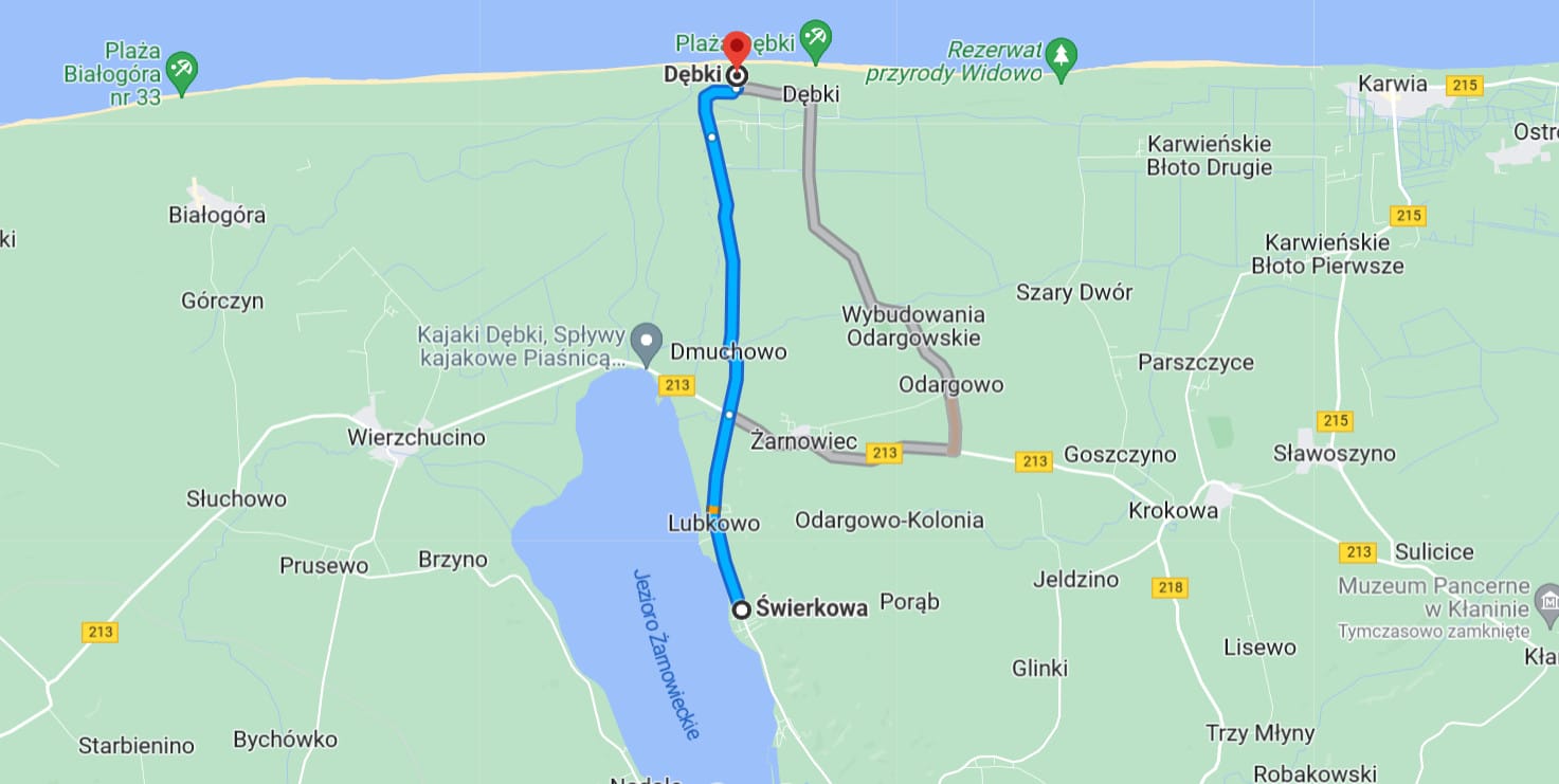 Wschodni brzeg Jeziora Żarnowieckiego. Zaledwie ok. 3 minuty samochodem dzielą ją od plaży miejskiej i przystani żeglarskiej; do morza jest około 6,9 km ,wystarczająco blisko, by cieszyć się nadmorską atmosferą, a jednocześnie zachować spokój i prywatność.