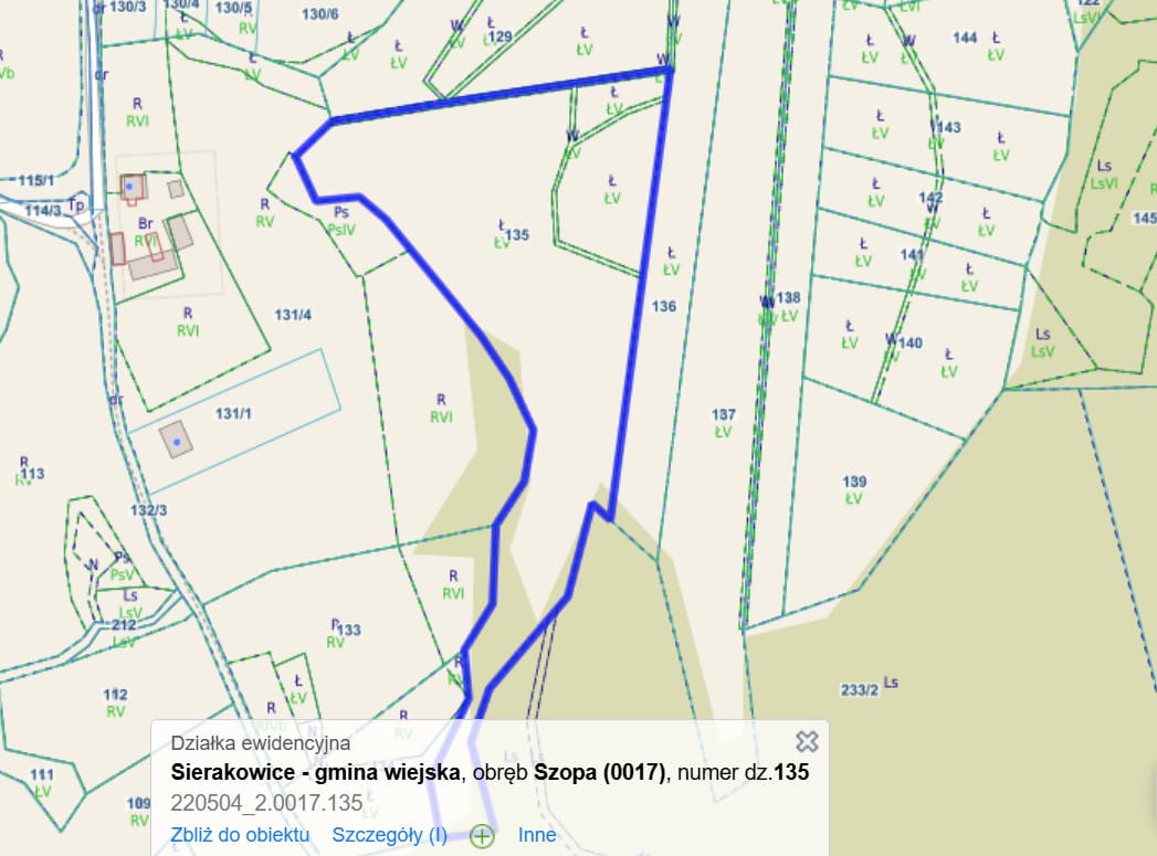 TakDziałka o powierzchni 2,2 ha, użytki łąki, położona bezpośrednio przy lesie.
