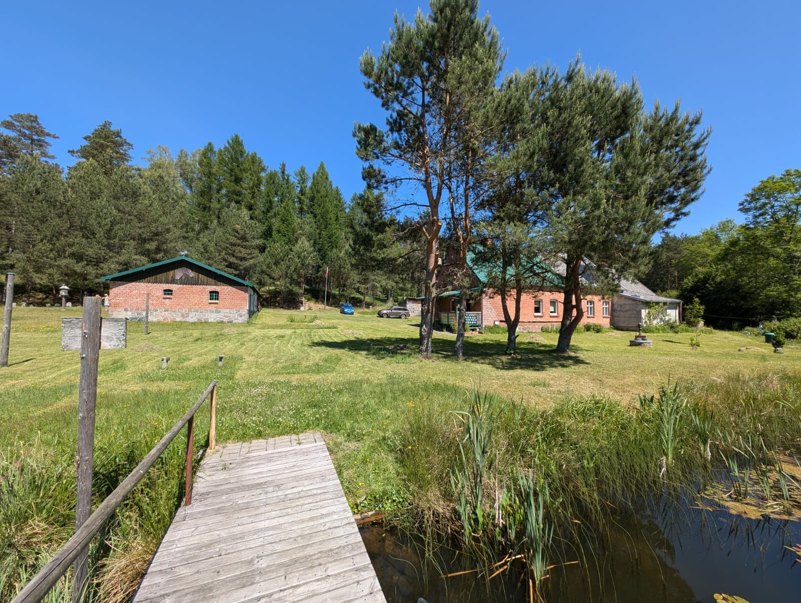 2,63 ha dzikiej natury, pośród której stoi dom z czerwonej cegły.
