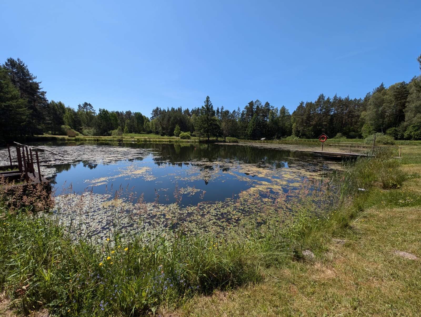 Własne stawy z drewnianymi pomostami, śpiew ptaków i trzask opalanego drewna tworzą naturalne atelier.