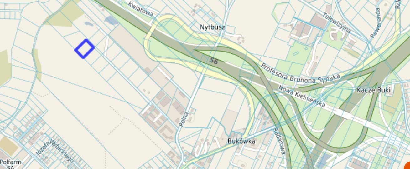 Działka nie jest objęta MPZP, co pozwala na dużą elastyczność – można wystąpić o warunki zabudowy a zabudowa w sąsiedztwie (hale, magazyny, warsztaty, logistyka) daje bardzo dobre szanse na uzyskanie WZ.