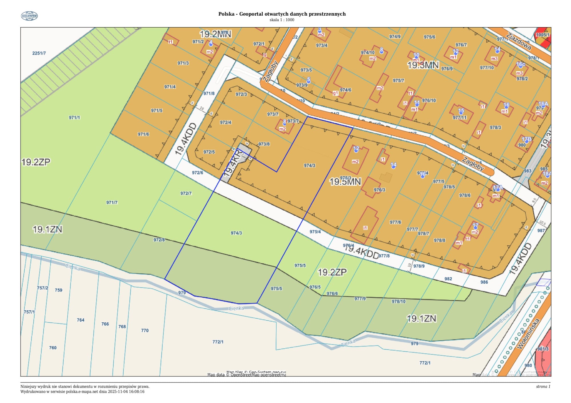 Teren, na którym położona jest oferowana nieruchomość jest objęty miejscowym planem zagospodarowania przestrzennego 19.5 MN (około 2500 m2)