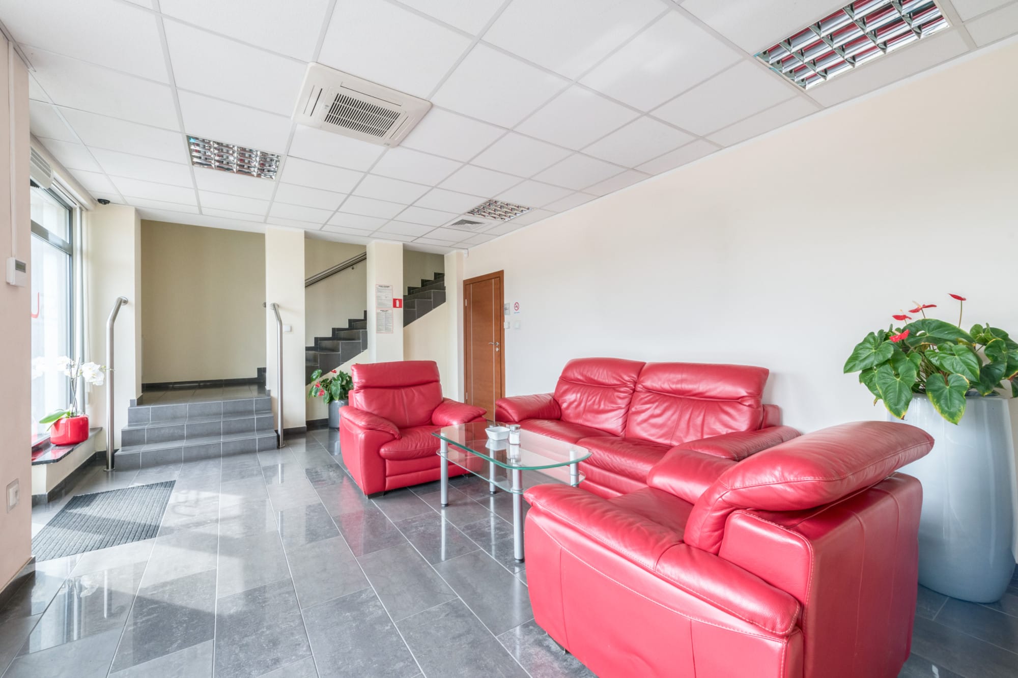 – Powierzchnie biurowe wykończone w bardzo dobrym standardzie, z pełnym zapleczem sanitarnym, niezależną klimatyzacją (kuchnia, łazienki, szatnia, sala konferencyjna, wydzielone pomieszczenia biurowe, serwerownia, kotłownia, recepcja).