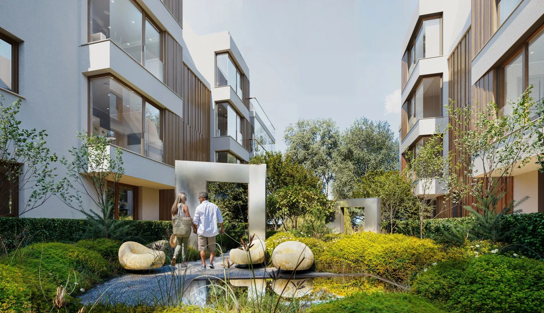 Duże, narożne i bezsłupkowe okna panoramiczne, balkony z przesuwanym systemem zabudowy, a także starannie zaprojektowane otoczenie pozwalają w pełni cieszyć się bliskością natury.