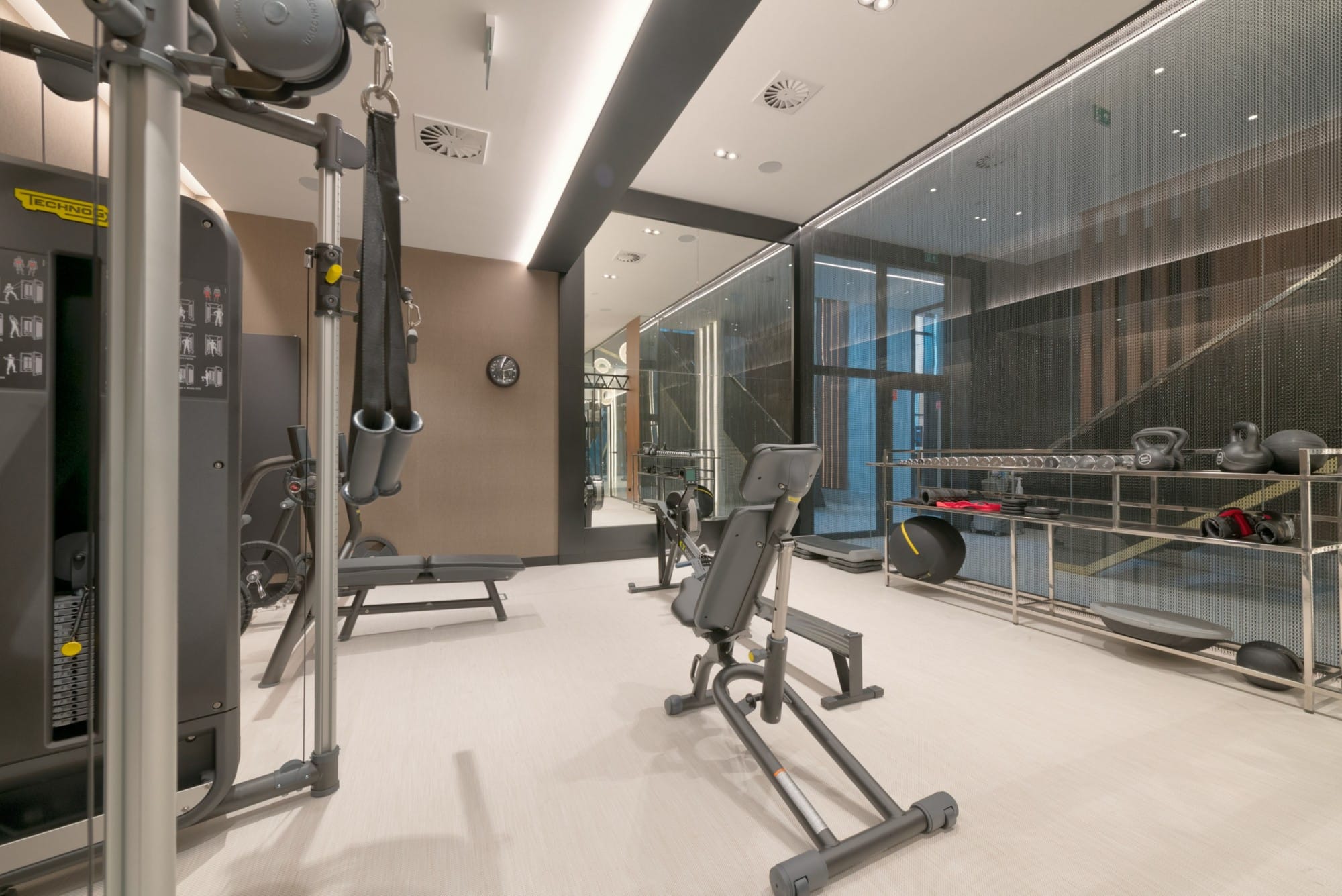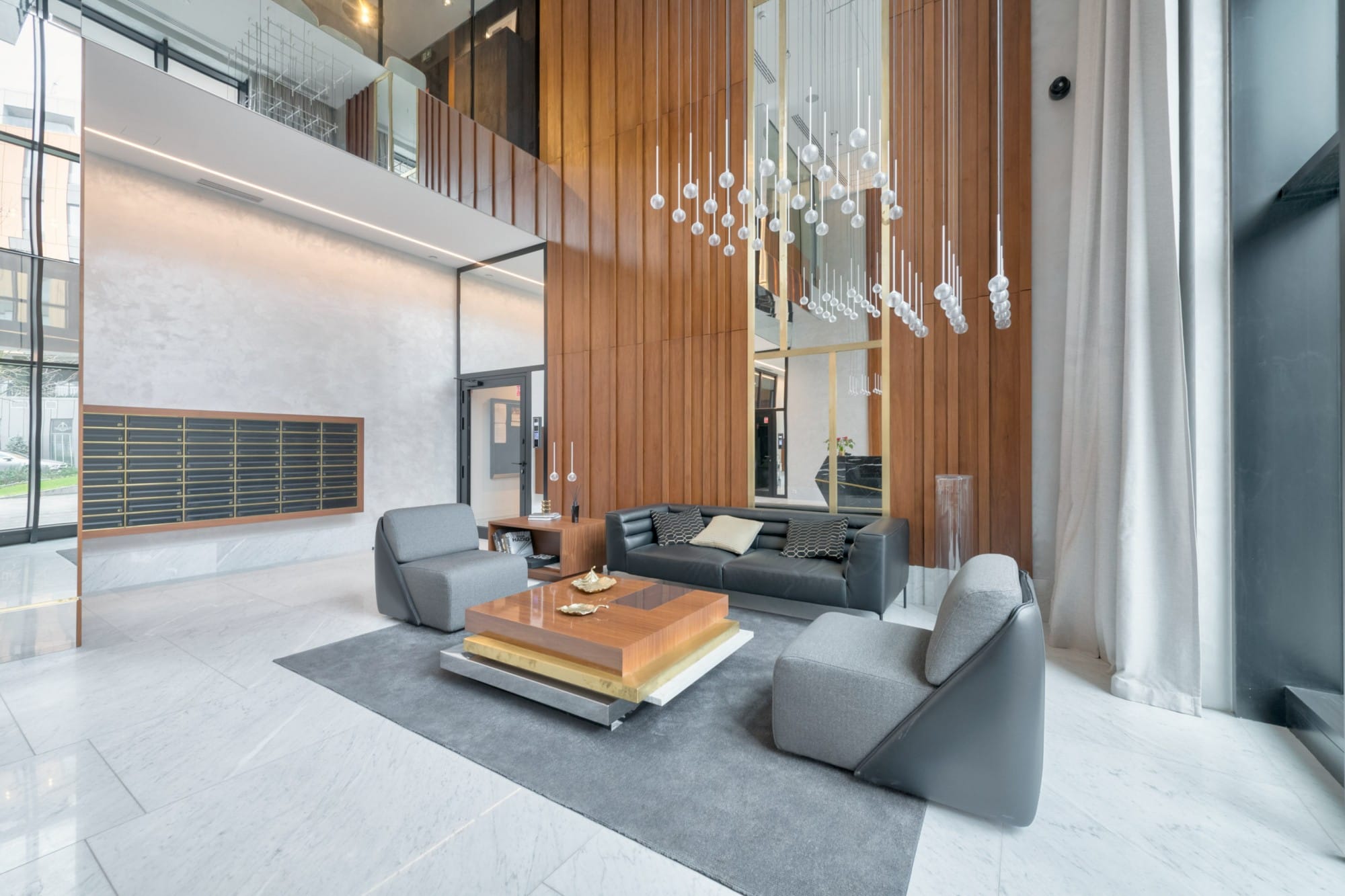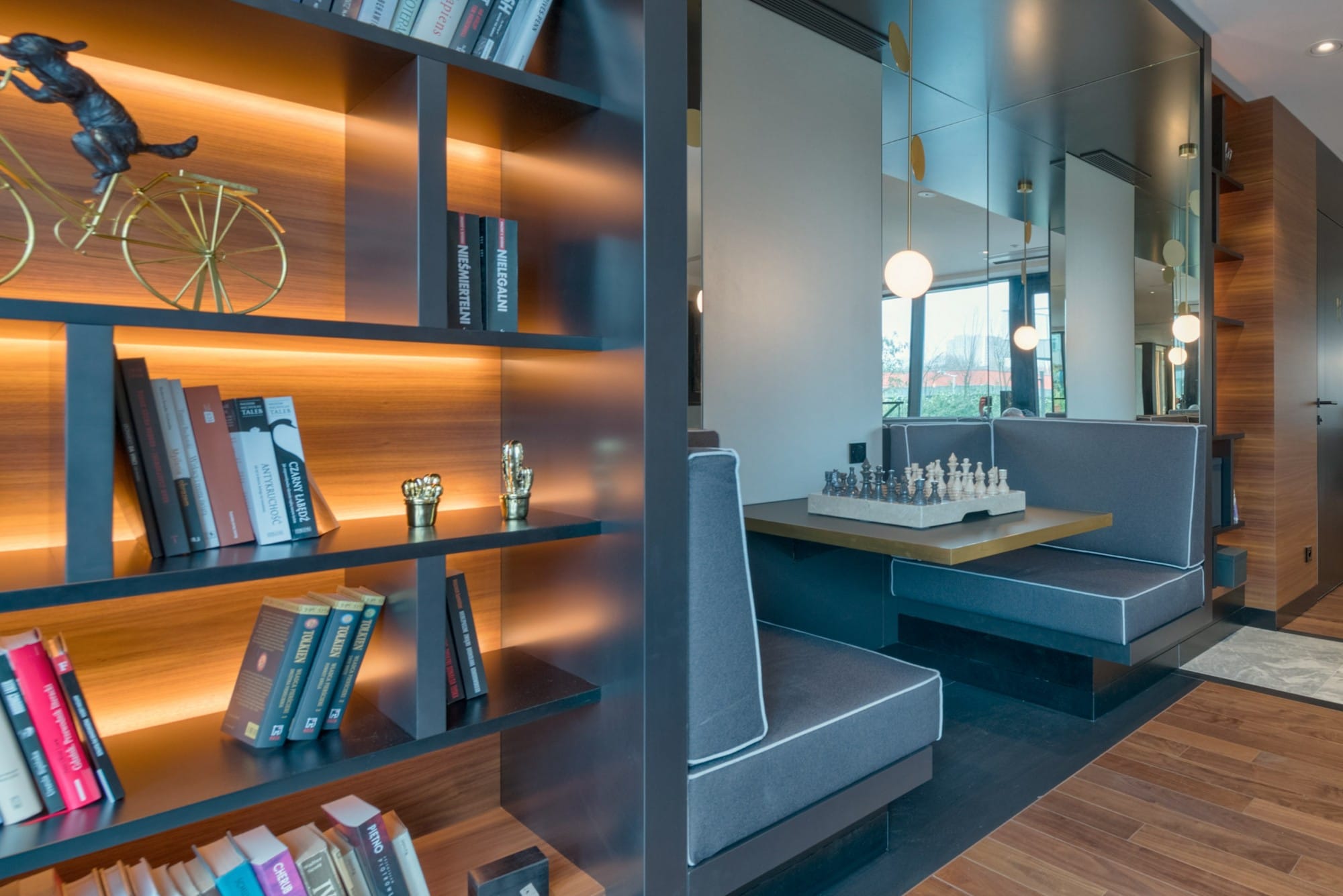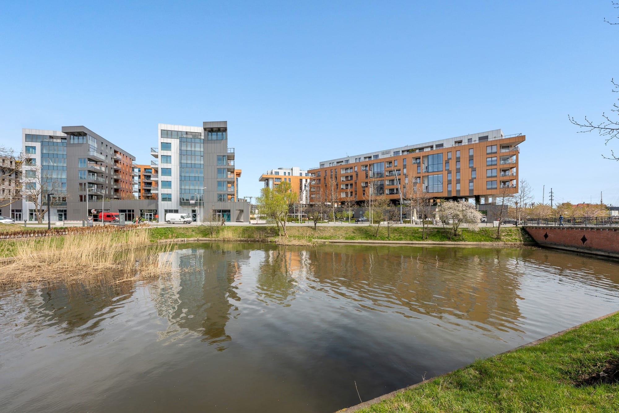 Mieszkańcy mają do dyspozycji luksusowe części wspólne: reprezentacyjne lobby z recepcją 24/7, prywatną siłownię, strefę SPA z saunami, salę do masażu i jogi, elegancką salę klubową z biblioteką, bilardem i barem, a także zielony taras widokowy i parking podziemny. Duże przeszklenia zapewniają piękny widok na rzekę i naturalne światło.