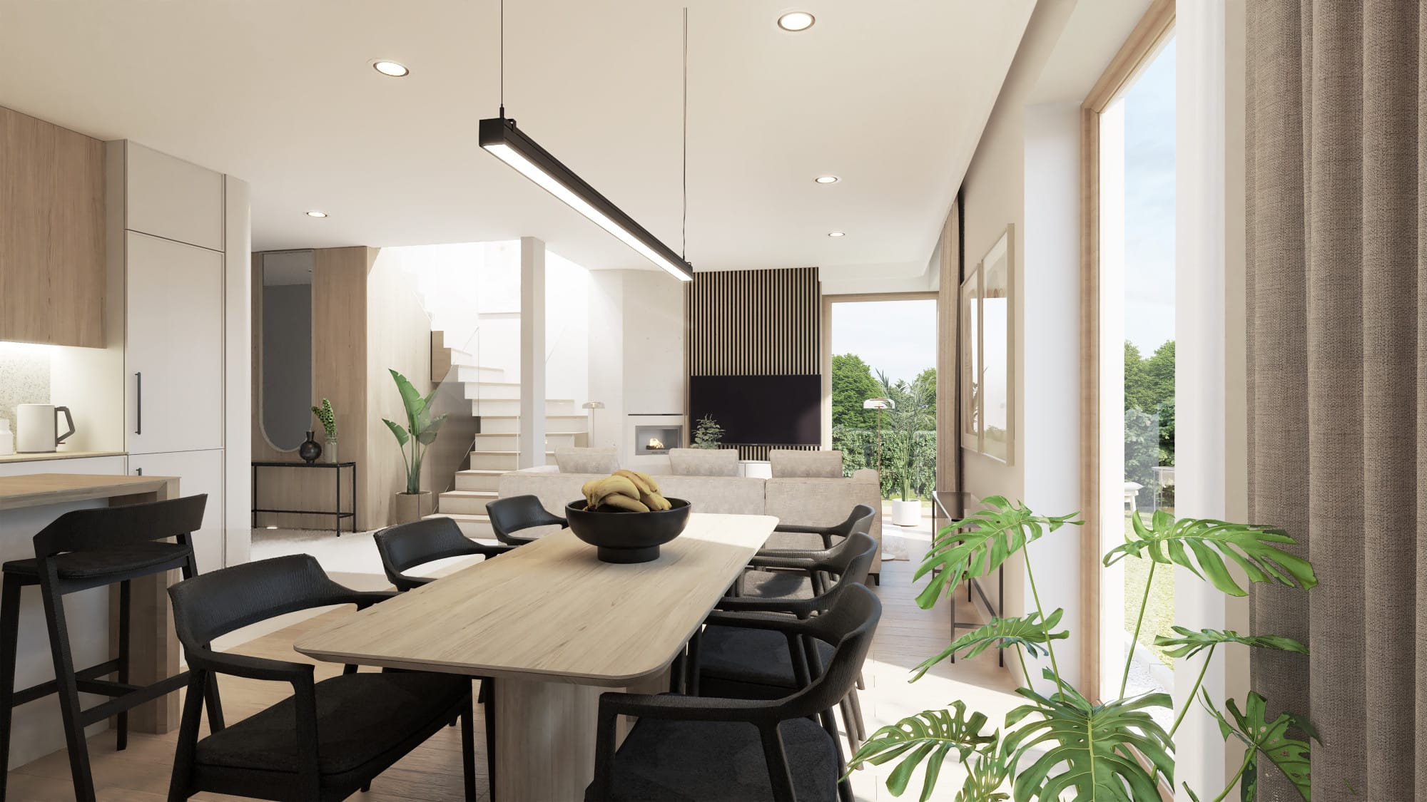 – salon z aneksem kuchennym oraz bezpośrednim wyjściem na ogród