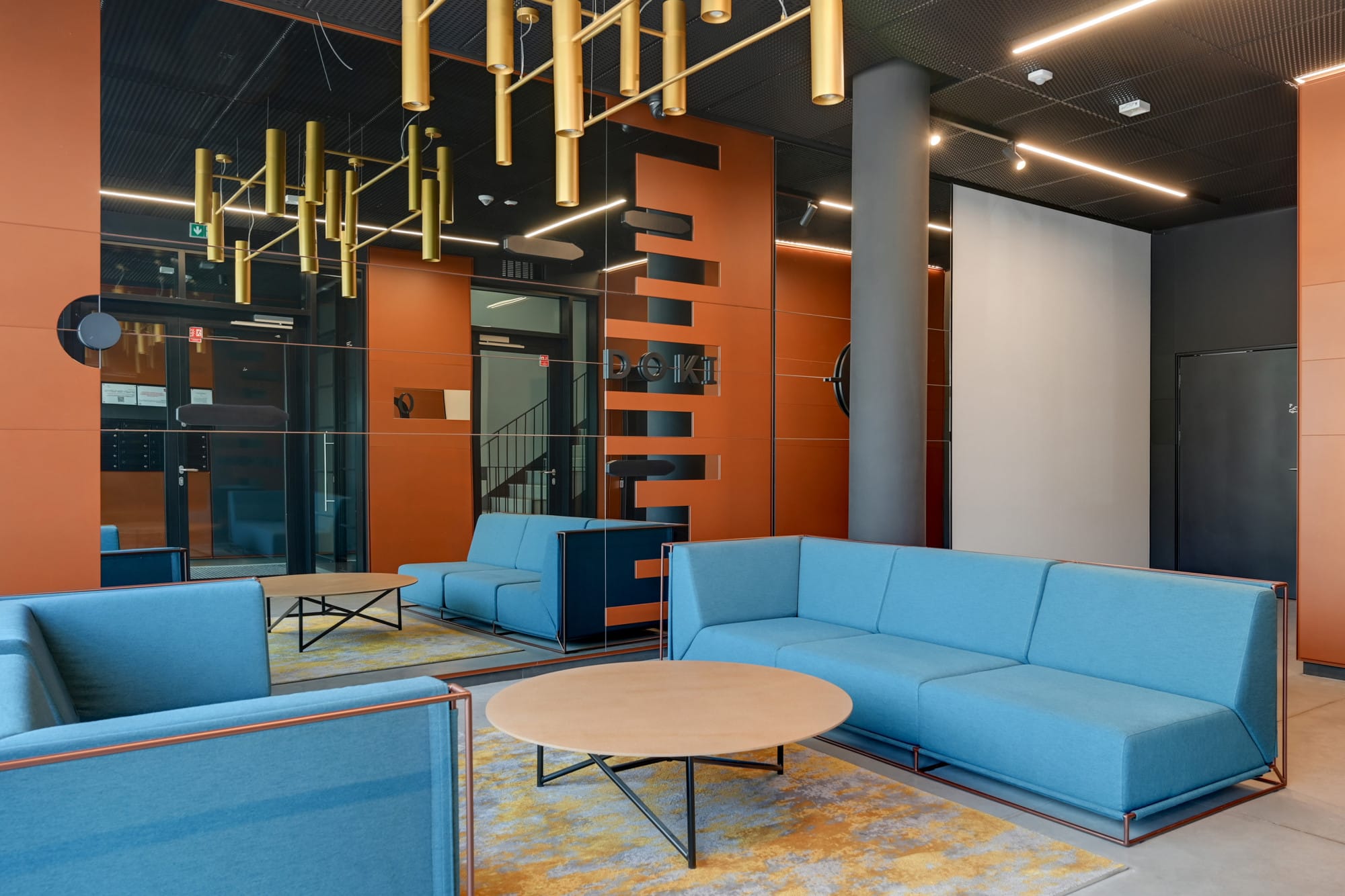 W strefie wejścia do klatki schodowej znajduje się elegancka strefa wypoczynku.