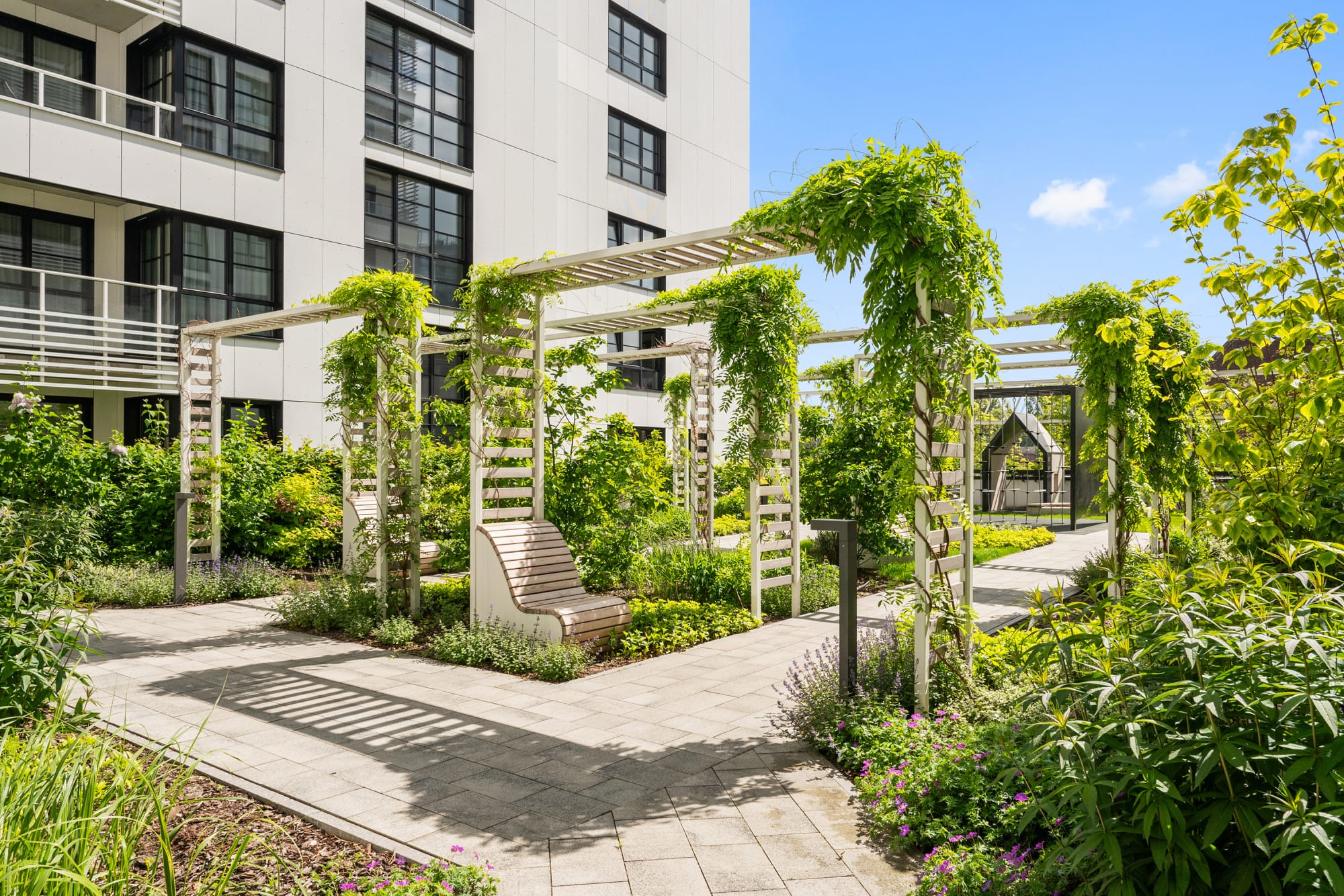 Do wykończeń użyto naturalnych materiałów wysokiej klasy, zgodnych z najnowszymi trendami stonowanej elegancji. Na podłogach naturalne drewno dębowe, kuchnia w jasnych barwach z pojemnymi zabudowami, wyposażona w sprzęt marki Miele. W łazienkach wanna oraz kabiny prysznicowe, markowe baterie i sprzęty.
