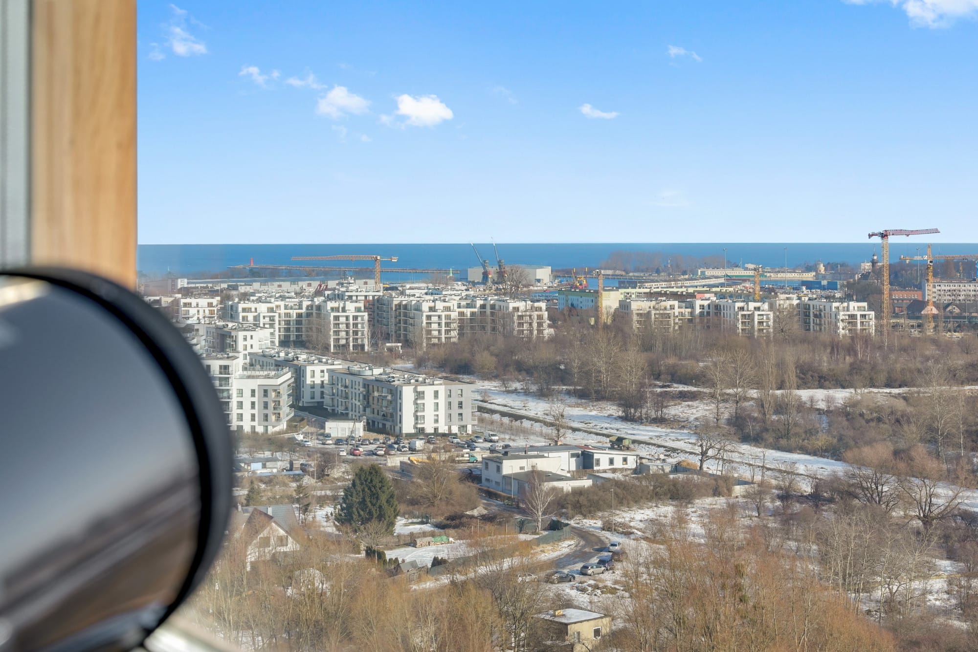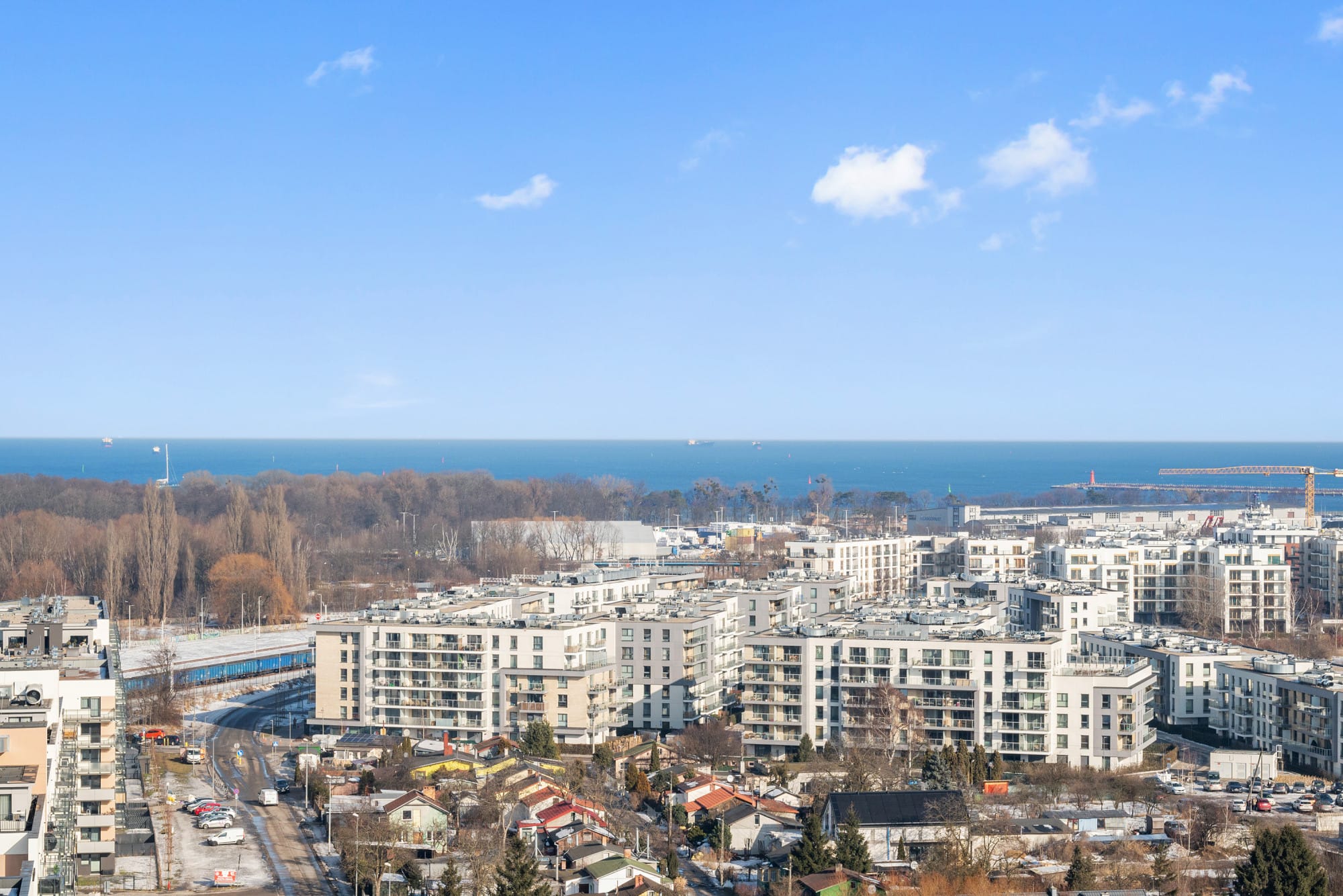 TakNa sprzedaż wyjątkowe, jasne mieszkanie 2-pokojowe położone na wysokim piętrze w prestiżowej dzielnicy Letnica. Nieruchomość zachwyca panoramicznym widokiem na zatokę, który można podziwiać zarówno z salonu, jak i z balkonu – to idealne miejsce na poranną kawę i wieczorny relaks. Wnętrze zostało wykończone z dbałością o każdy detal, z wykorzystaniem materiałów wysokiej jakości. Dominują tu szlachetne, drewniane meble dębowe, nadające przestrzeni, elegancji i ponadczasowego charakteru. Drzwi wejściowe są dodatkowo wyciszone, co zapewnia komfort oraz poczucie prywatności. Mieszkanie jest doskonale doświetlone dzięki dużym przeszkleniom i ekspozycji zapewniającej naturalne światło przez większą część dnia. Funkcjonalny układ obejmuje przestronny salon z aneksem kuchennym, komfortową sypialnię oraz łazienkę.