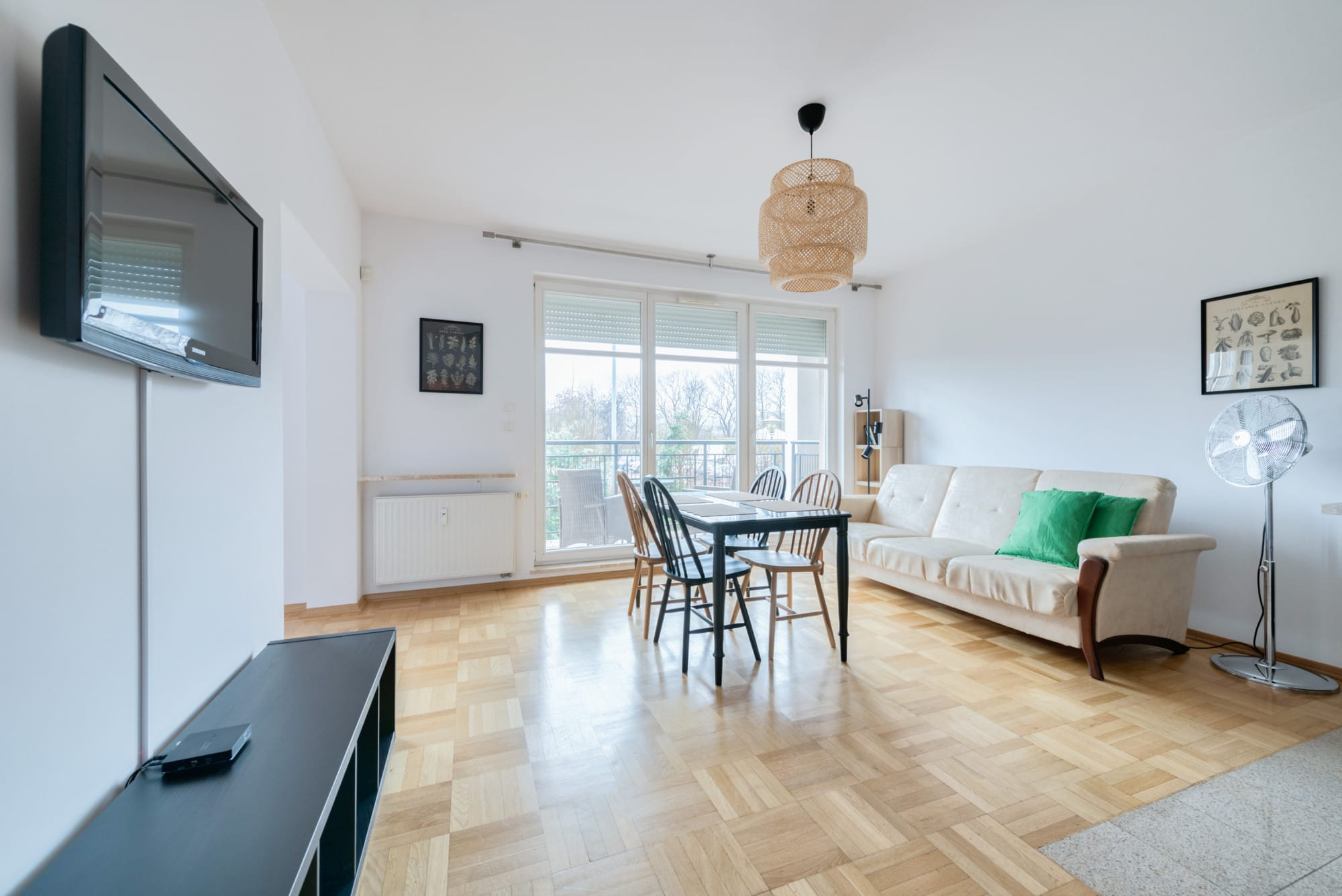 Z salonu wyjście na obszerny, bardzo słoneczny balkon.
