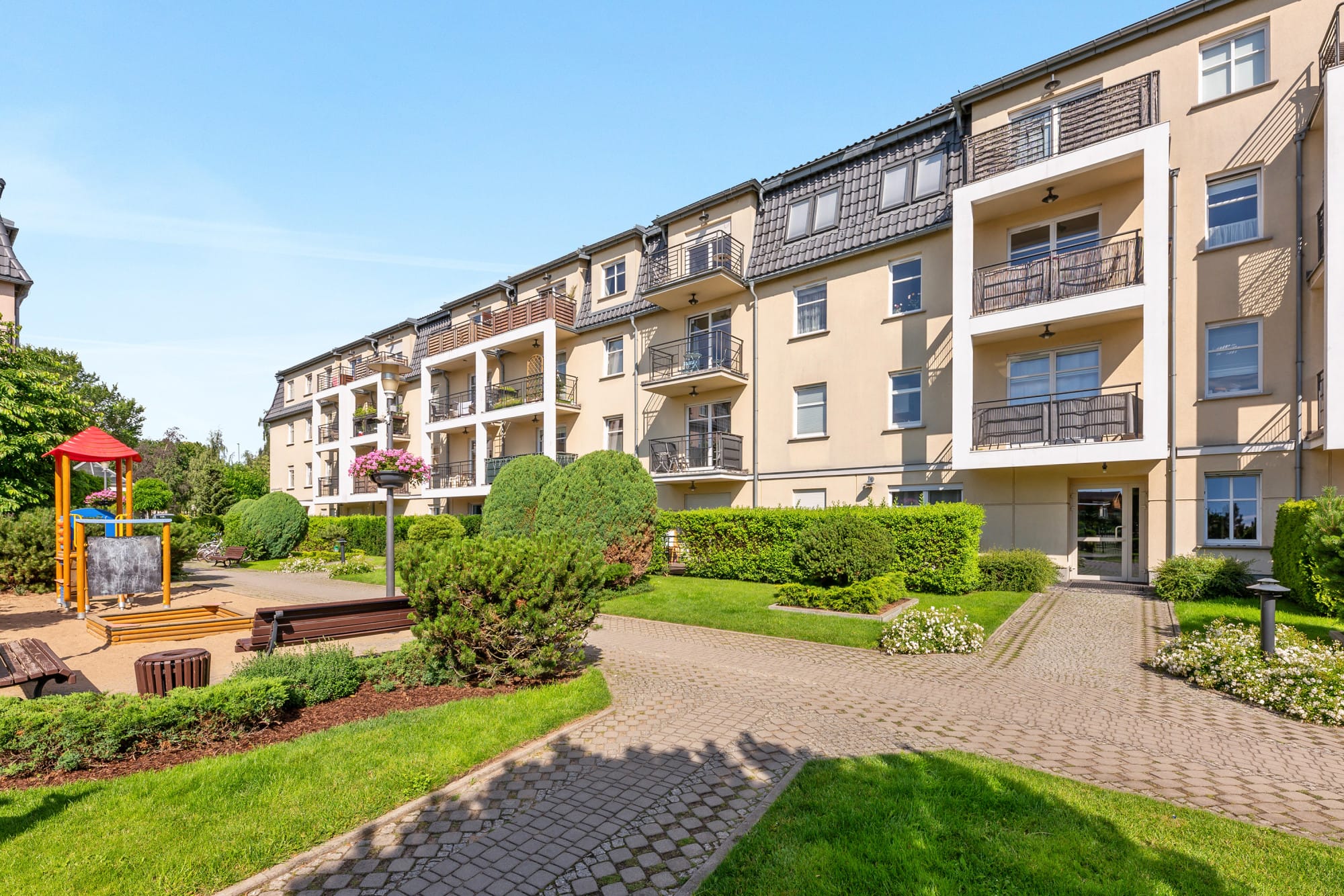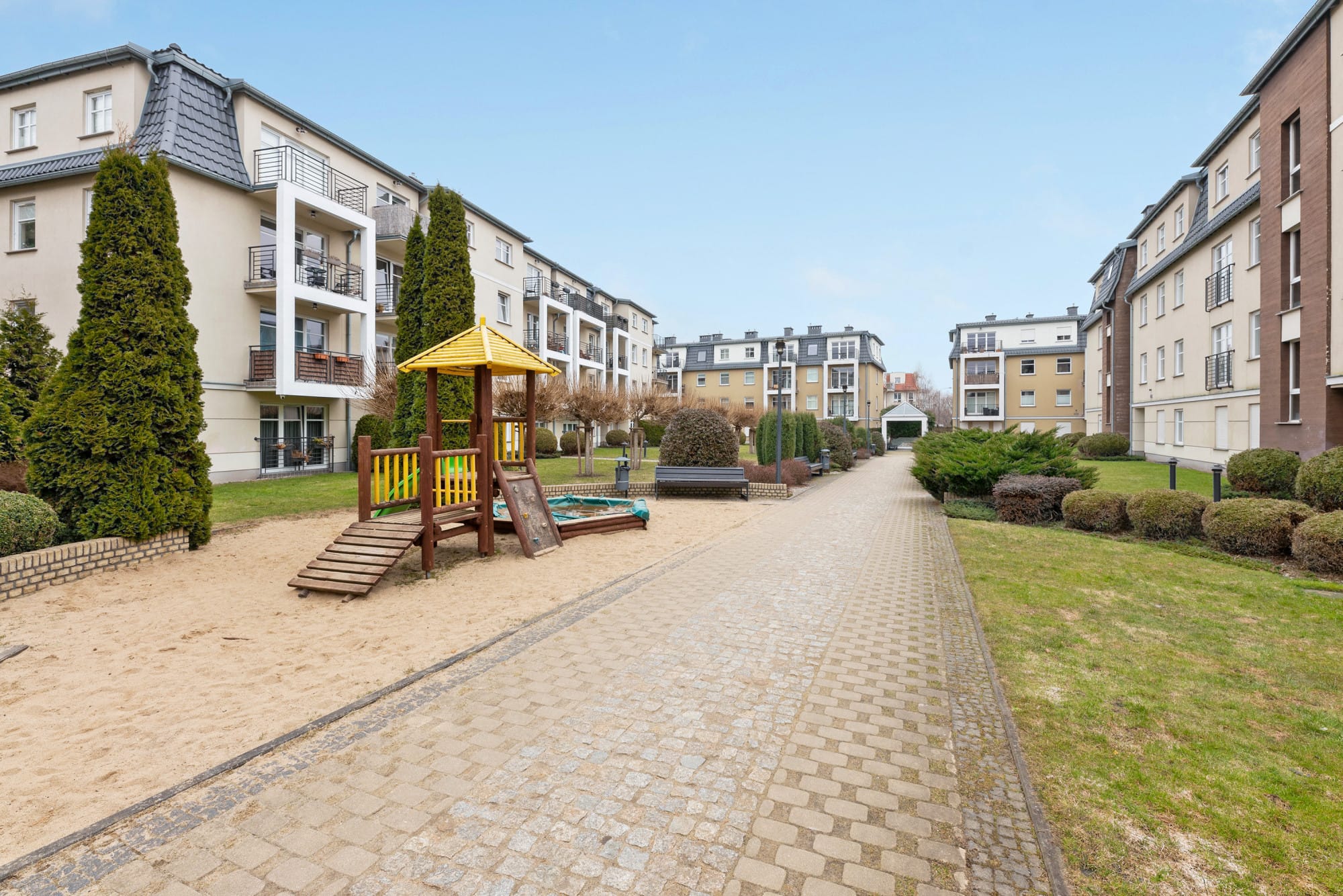 Osiedle wybudowane przez Invest Komfort, ma przyjemny klimat, ładnie zagospodarowane tereny zielone, a właściciele mogą korzystać z wewnętrznego centrum fitness wraz z saunami. Odległość do linii morza, oraz piaszczystej plaży jedynie 700 metrów. W pobliżu znajdują się sklepy, zielony rynek oraz przystanki komunikacji miejskiej. Teren ogrodzony, z wyłączonym ruchem samochodowym.