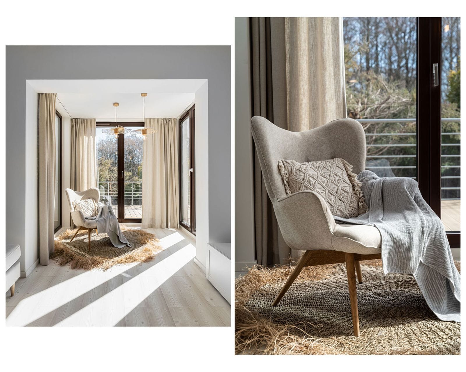 – salon z aneksem kuchennym i werandą z wyjściem na duży, przestronny taras z widokiem na zieleń