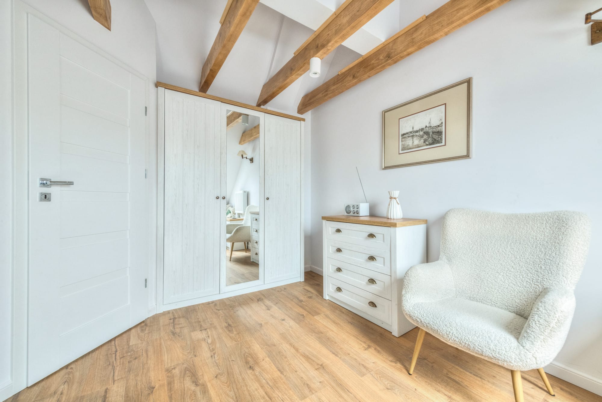 – Wykończenie: Mieszkanie zachwyca połączeniem nowoczesnych rozwiązań z elementami nawiązującymi do klasycznej architektury Sopotu – oryginalne belki stropowe