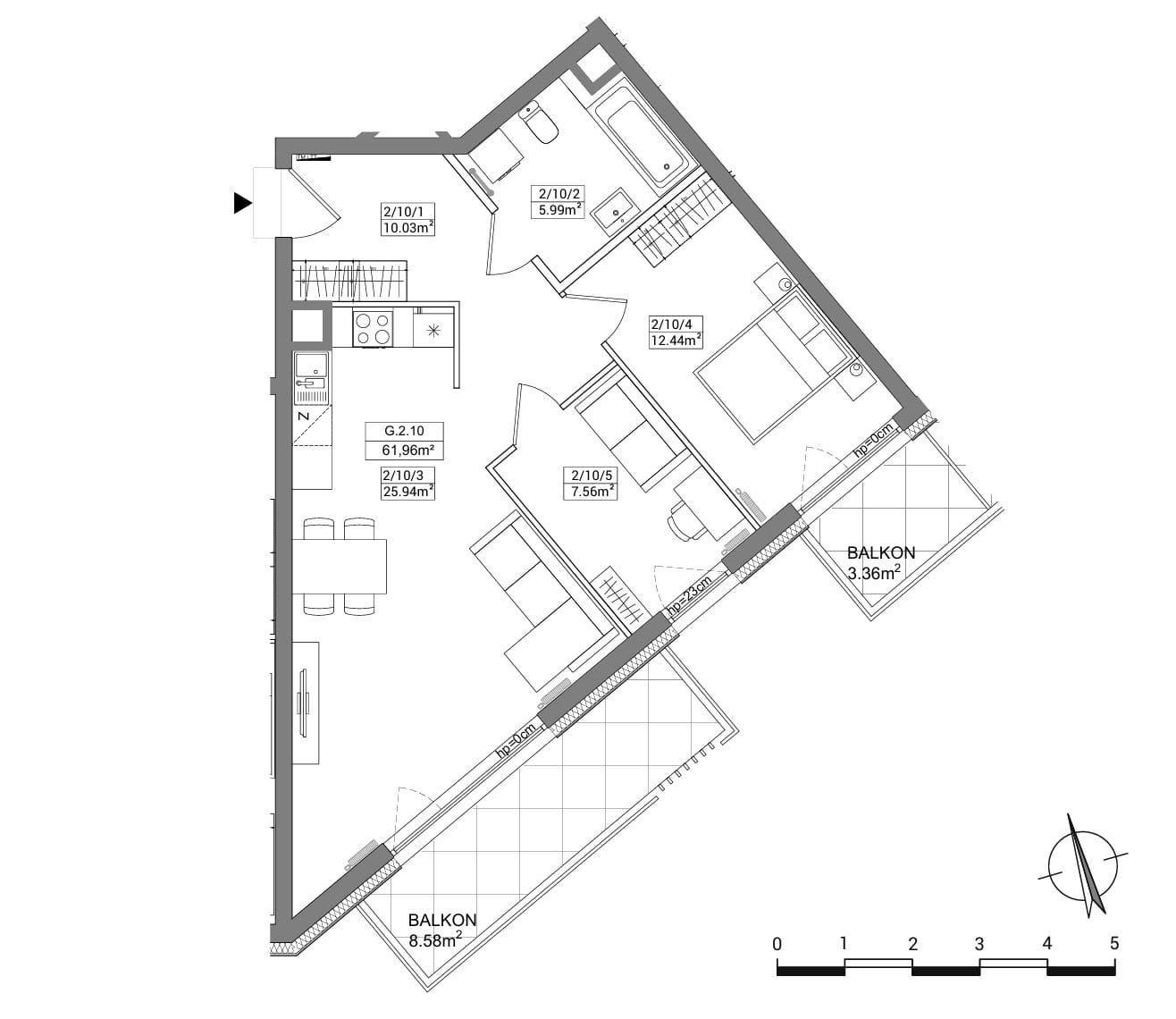 Mieszkanie wyróżnia się dwoma przestronnymi balkonami, które stanowią naturalne przedłużenie części dziennej i pozwalają cieszyć się spokojem zielonego otoczenia. Doskonała komunikacja – w pobliżu stacja PKM – zapewnia szybki dojazd do centrum Gdańska oraz na lotnisko. W bezpośrednim sąsiedztwie znajdują się tereny rekreacyjne, ścieżki spacerowe, zbiorniki wodne i usługi, które zapewniają codzienną wygodę.