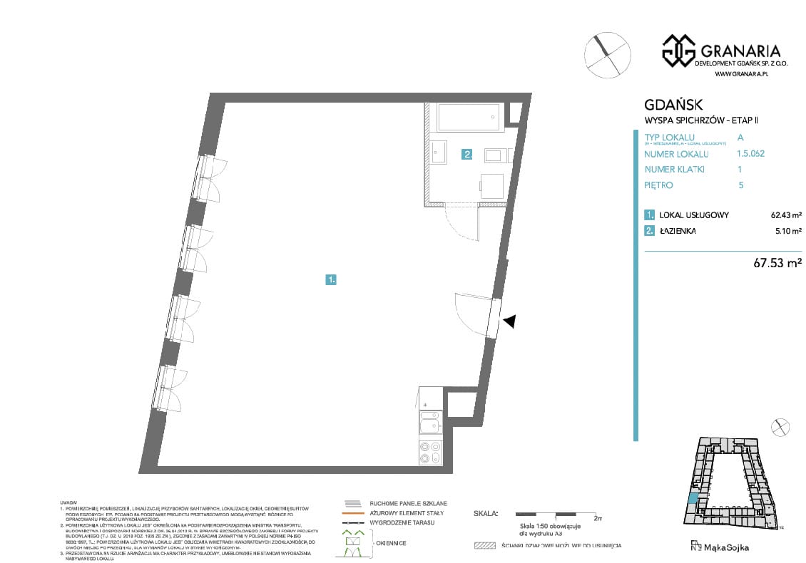TakNieruchomość zlokalizowana jest w najbardziej prestiżowej inwestycji w Gdańsku- Granaria na Wyspie Spichrzów. II etap inwestycji zostanie ukończony do 2024 roku. Granaria to projekt łączący nowoczesną tkankę z poszanowaniem gdańskiego dziedzictwa i historycznej zabudowy.