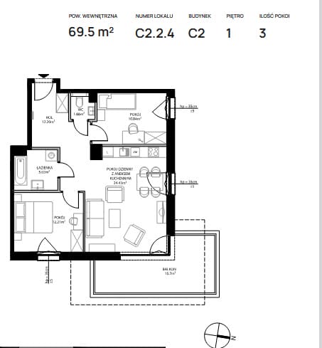 – Pokój dzienny z aneksem kuchennym (24,43 m2)