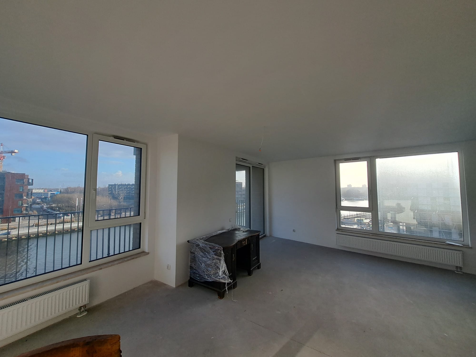 Dzięki narożnemu położeniu z mieszkania rozlega się niepowtarzalny widok na zakręt Motławy oraz historyczne i klimatyczne dźwigi stoczniowe. Taki widok z okna to idealny krajobraz Gdańska, o którym wszyscy marzą!