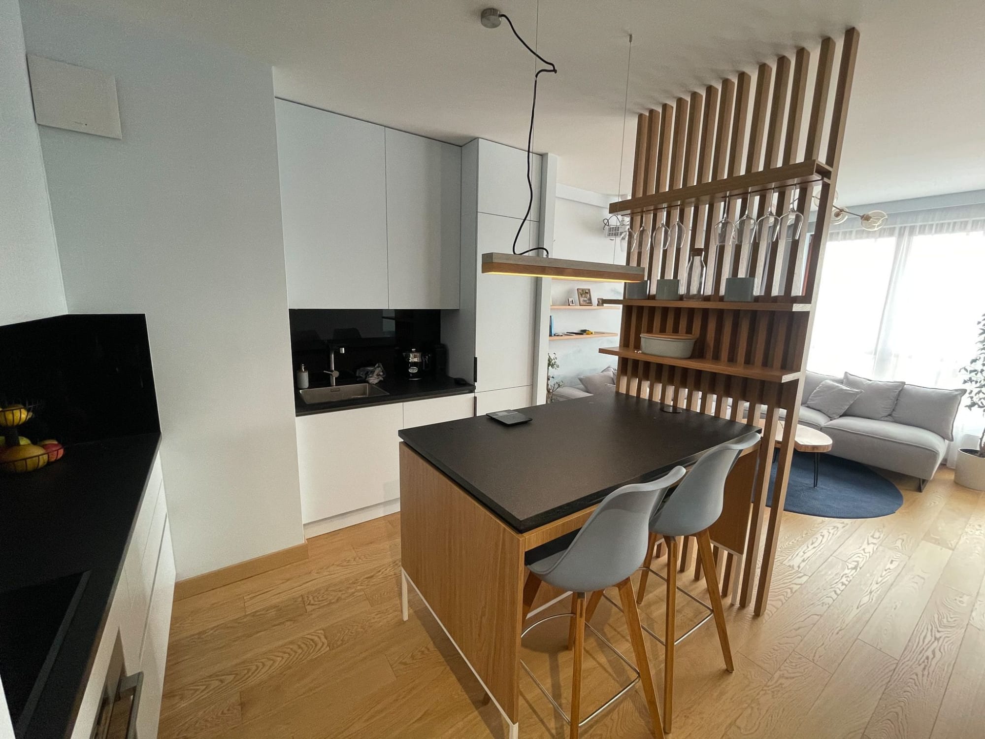 – Sprzedawane z pełnym wyposażeniem wysokiej jakości. m.in. rzutnik z ekranem, blaty kuchenne granitowe; oświetlone szafy