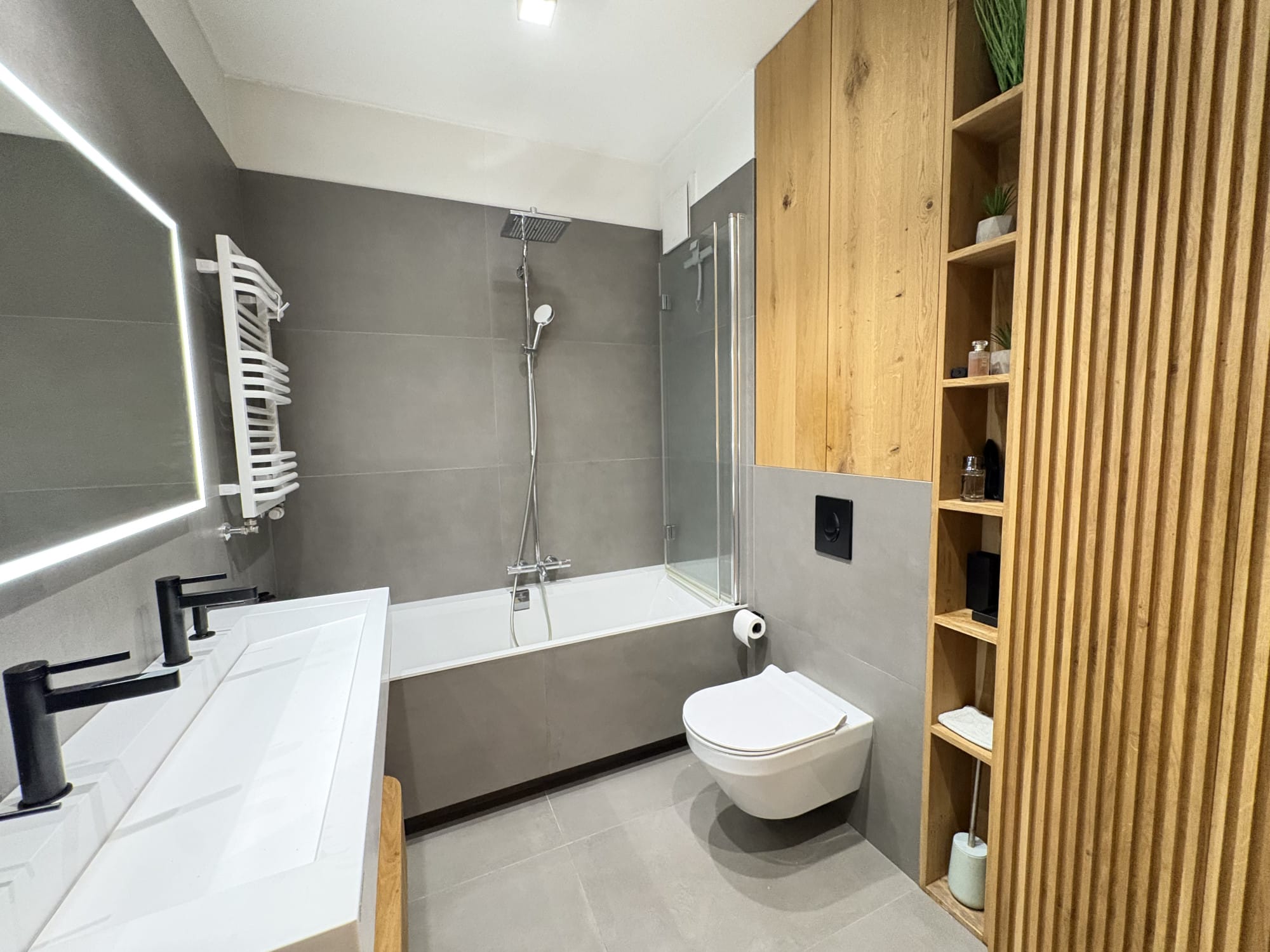 – Łazienka – 5,4 m2 (podwójna umywalka – dwa krany)