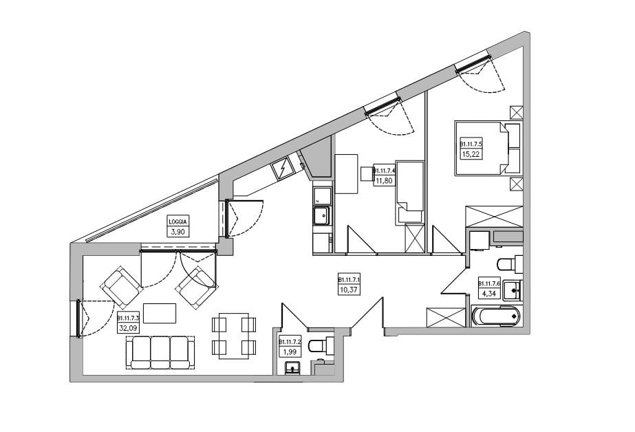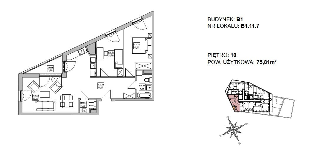 Pomieszczenia – Mieszkanie 75,81 m2