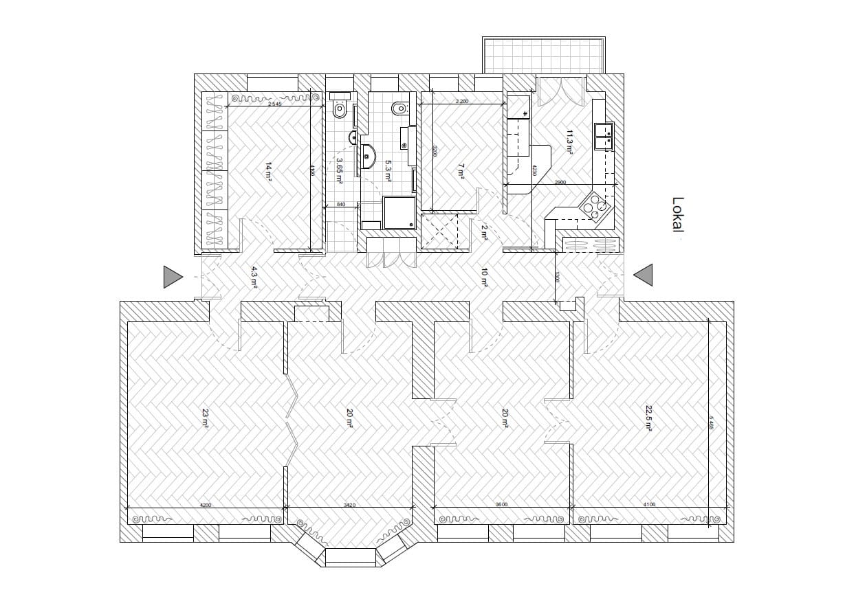 – 4 pokoje, które mogą być w amfiladzie (od strony zachodniej)