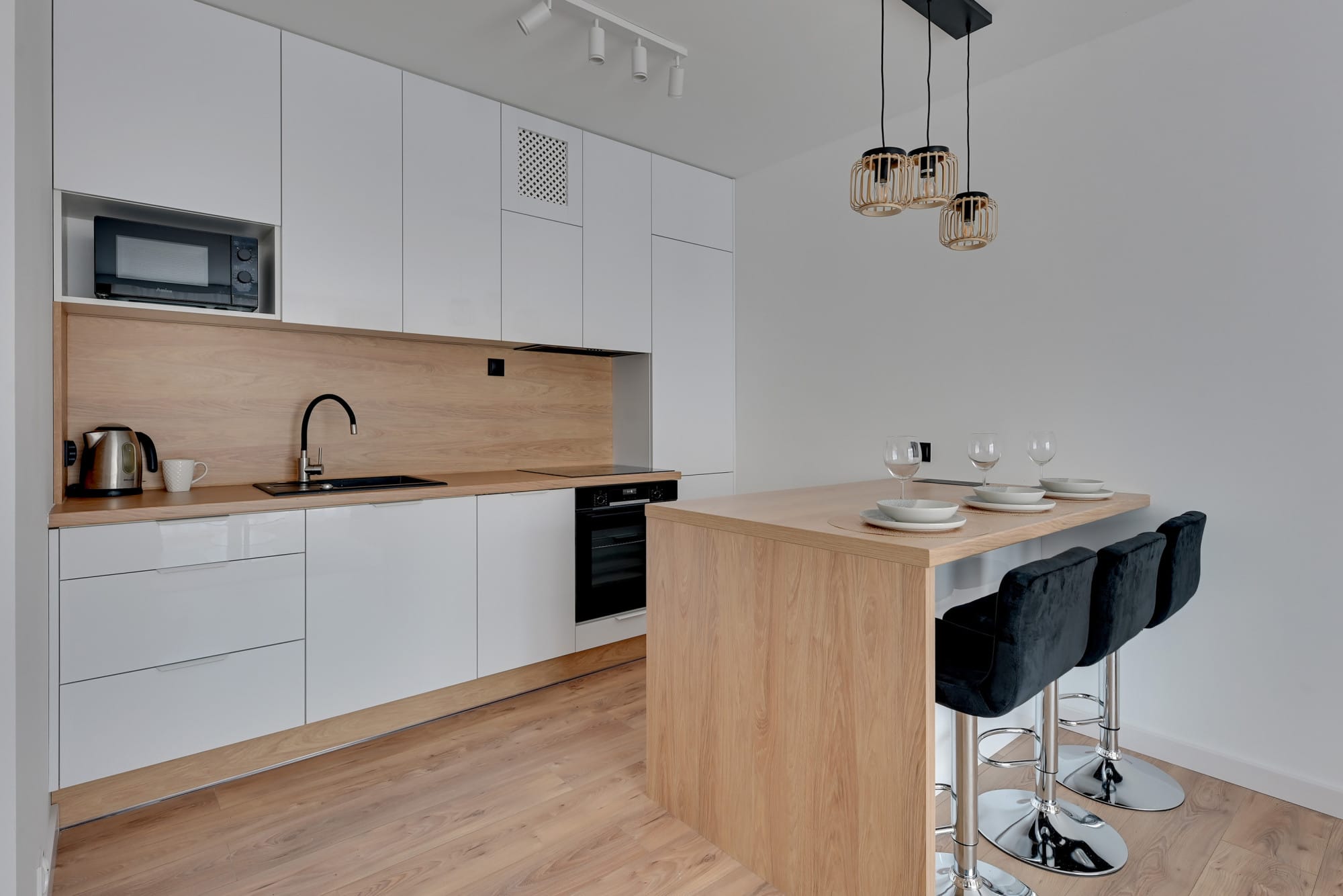– przestronny salon z aneksem kuchennym i wyjściem na balkon,