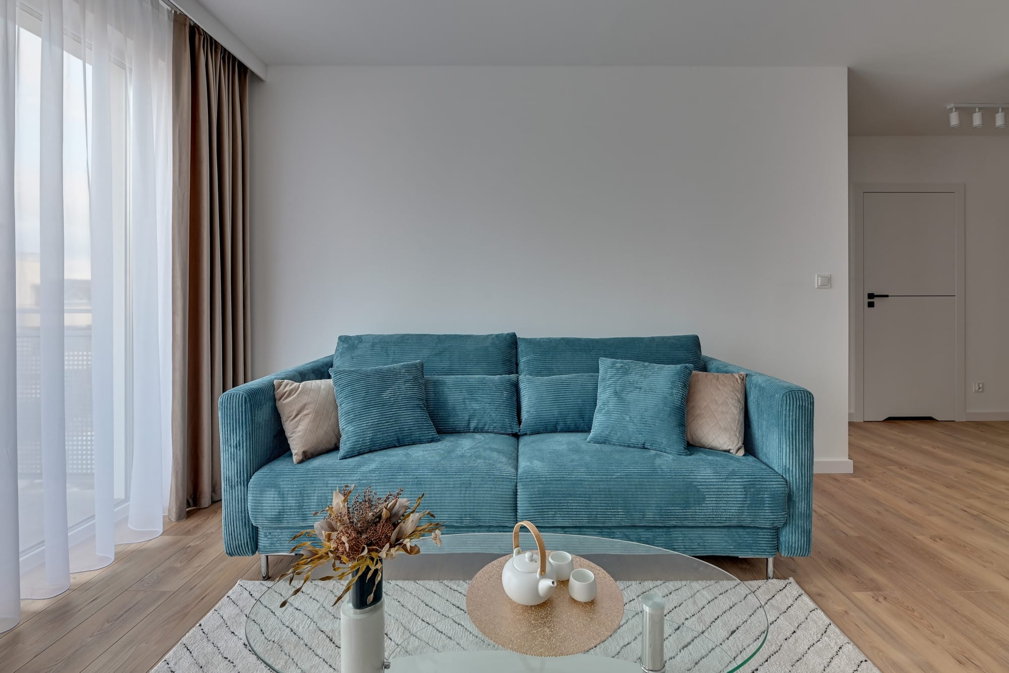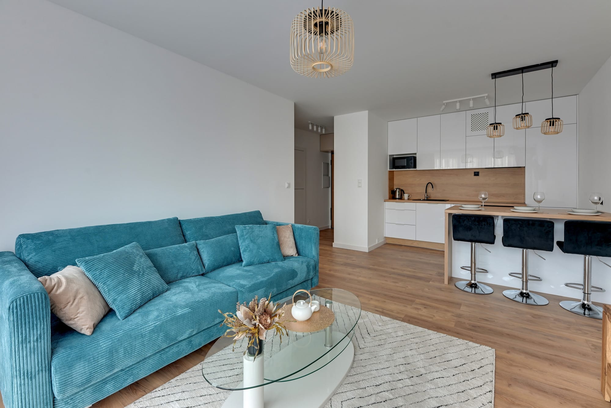 Na wynajem komfortowe, nowoczesne mieszkanie o powierzchni 45,79 m², położone na 2 piętrze nowego budynku z windą, na osiedlu Sokółka Zielenisz w Gdyni Chwarzno-Wiczlino. Mieszkanie wykończone w wysokim standardzie, urządzone w jasnych, stonowanych kolorach z dbałością o każdy detal.
