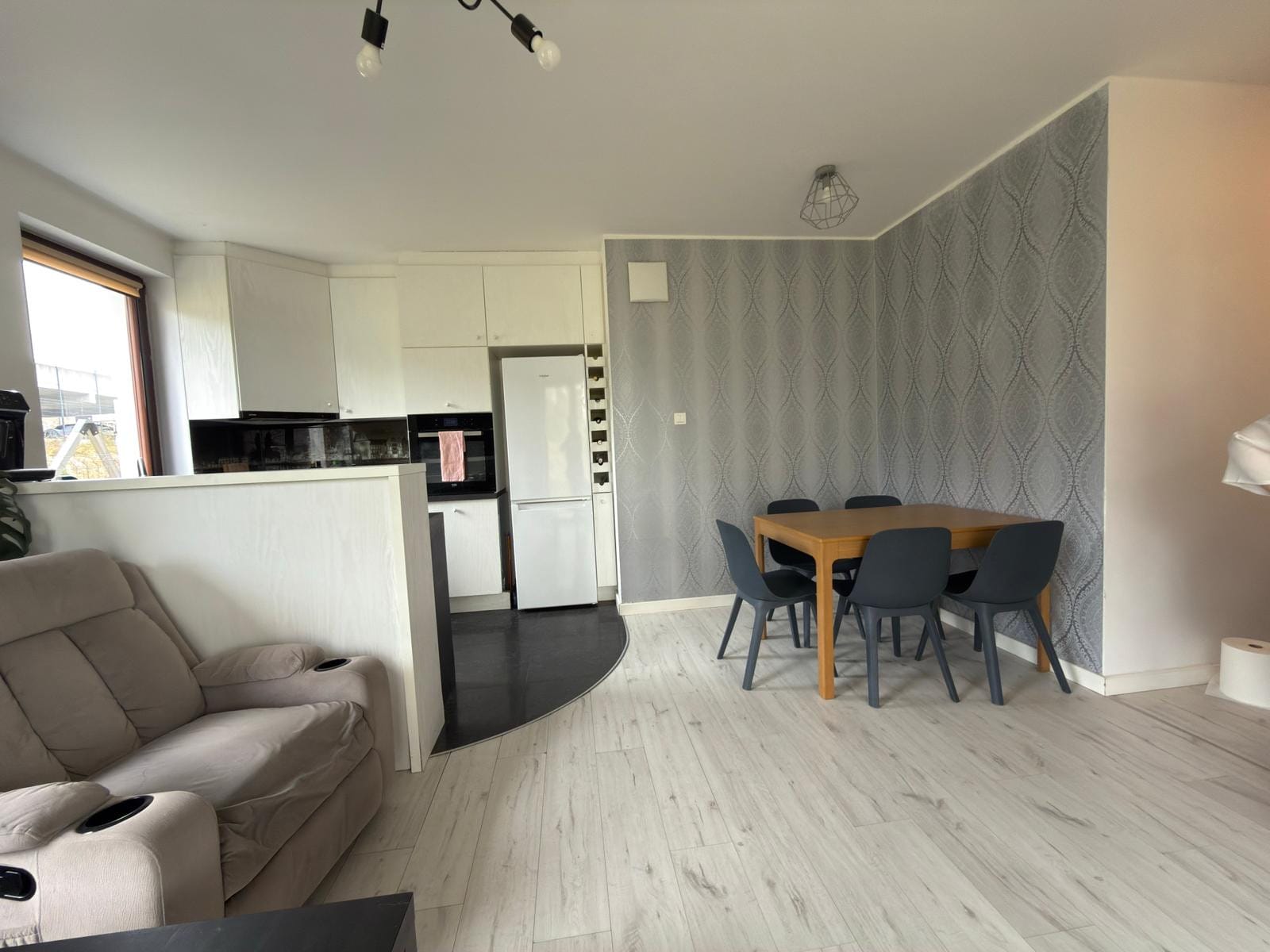 – Salon z aneksem kuchennym o pow. 25 m2 (lodówka, pralka, płyta, okap, piekarnik)